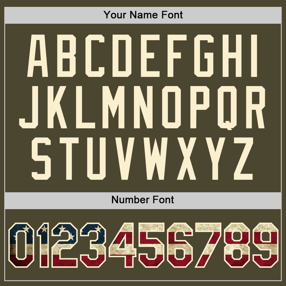 Custom Olive Vintage USA Flag Cream-Black Authentic Throwback Salute To Service Baseball Jersey