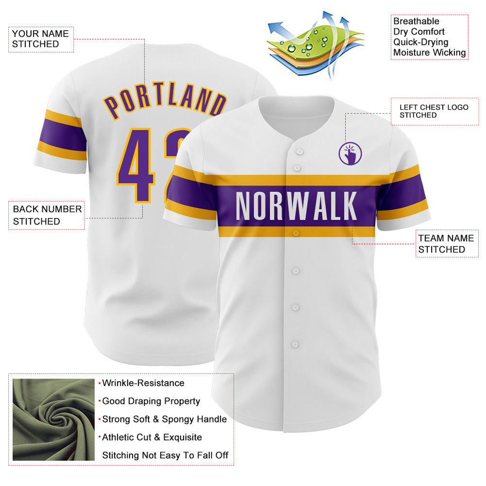 • Charger l'image dans la galerie, Custom White Purple-Gold Authentic Baseball Jersey