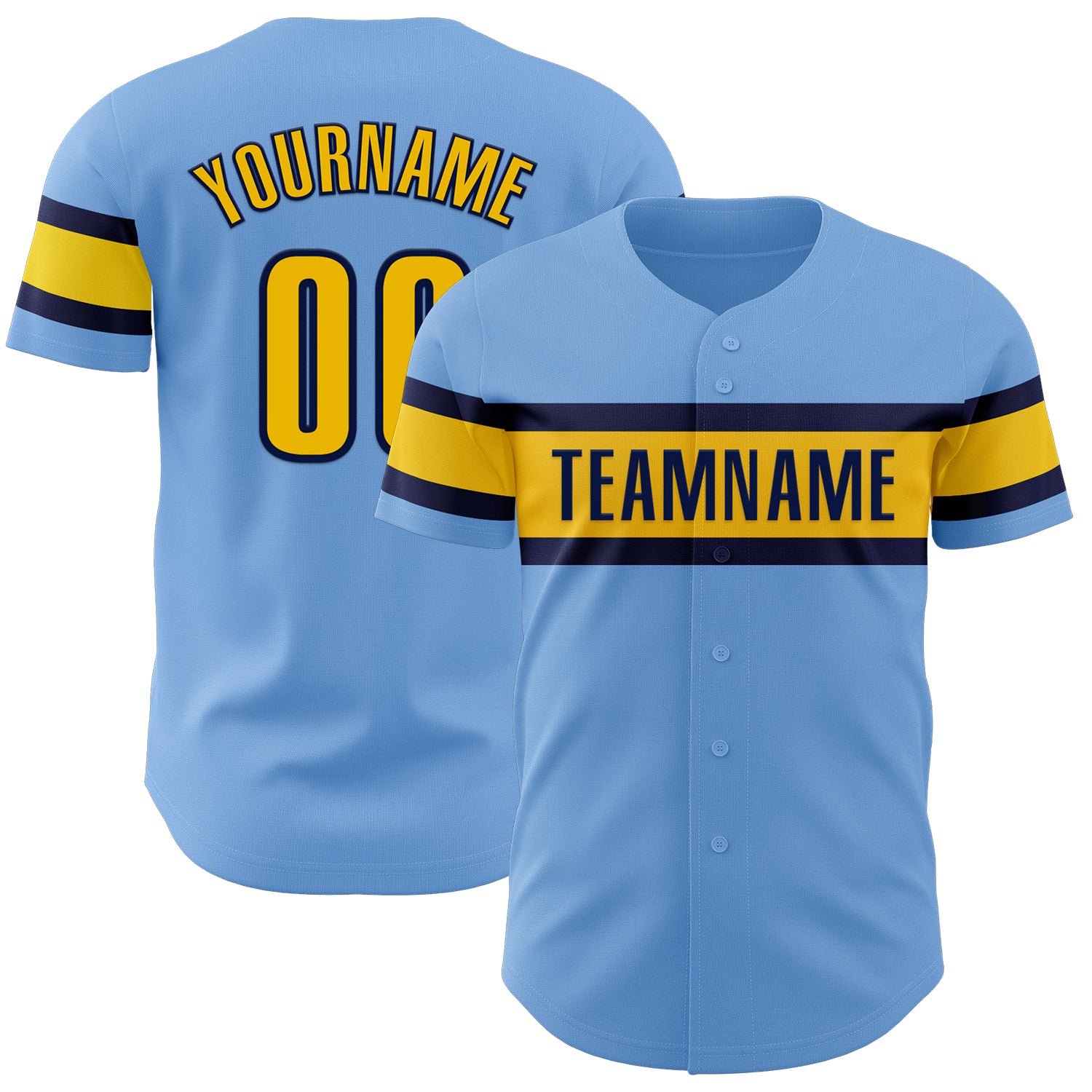 Custom Light Blue Yellow-Navy Authentic Baseball Jersey