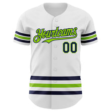 • Charger l'image dans la galerie, Custom White Navy-Neon Green Line Authentic Baseball Jersey