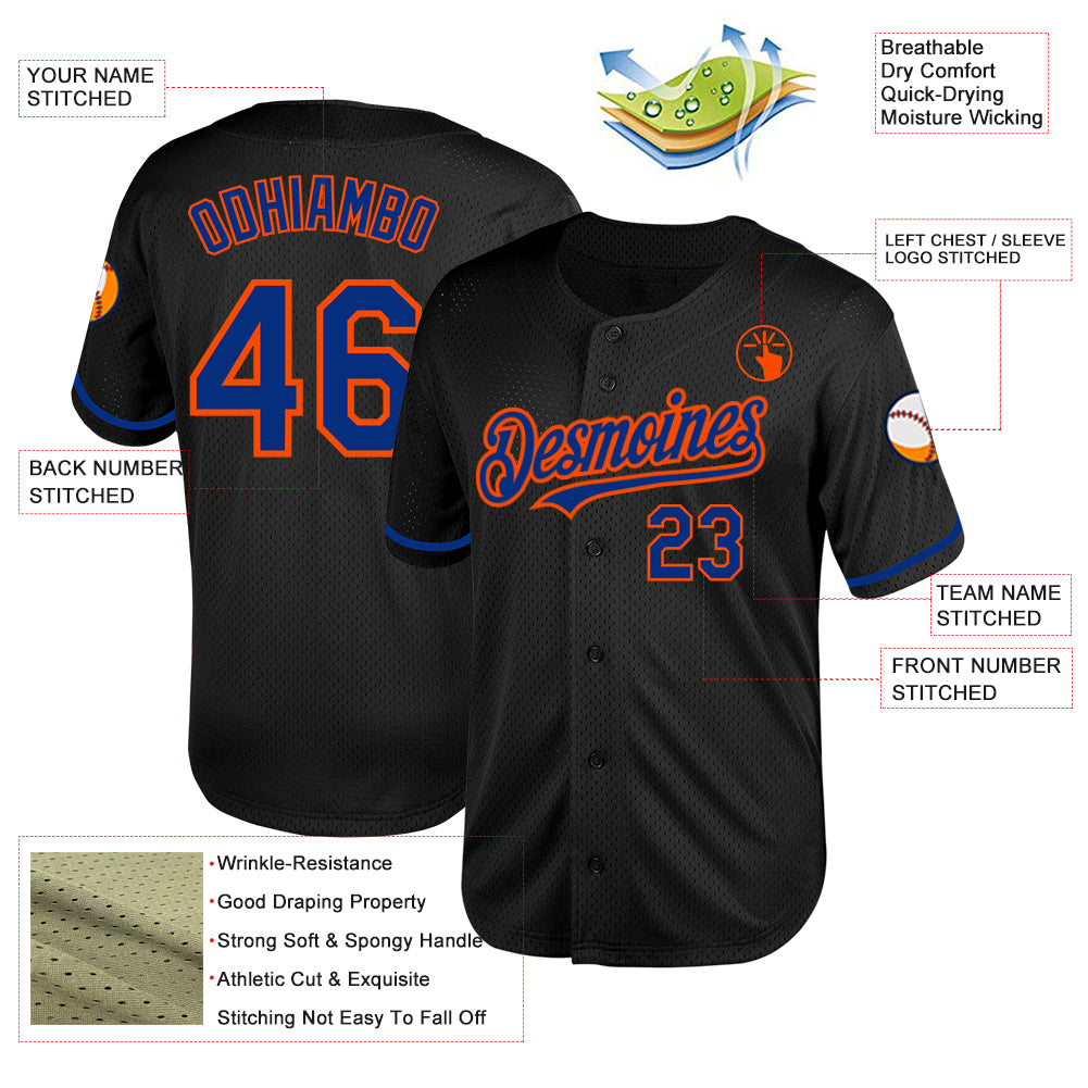 Custom Black Royal-Orange Mesh Authentic Throwback Baseball Jersey