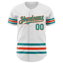 • Charger l'image dans la galerie, Custom White Teal-Orange Line Authentic Baseball Jersey