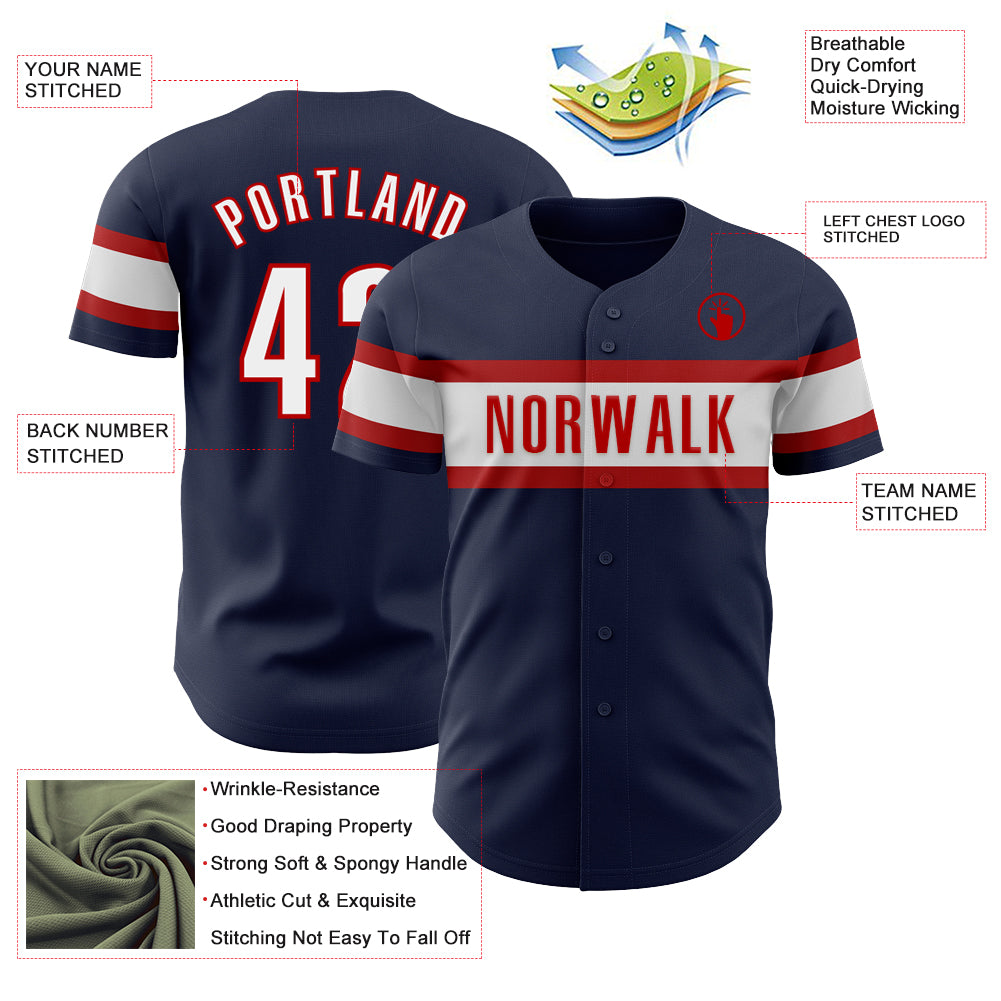 Custom Navy White-Red Authentic Baseball Jersey
