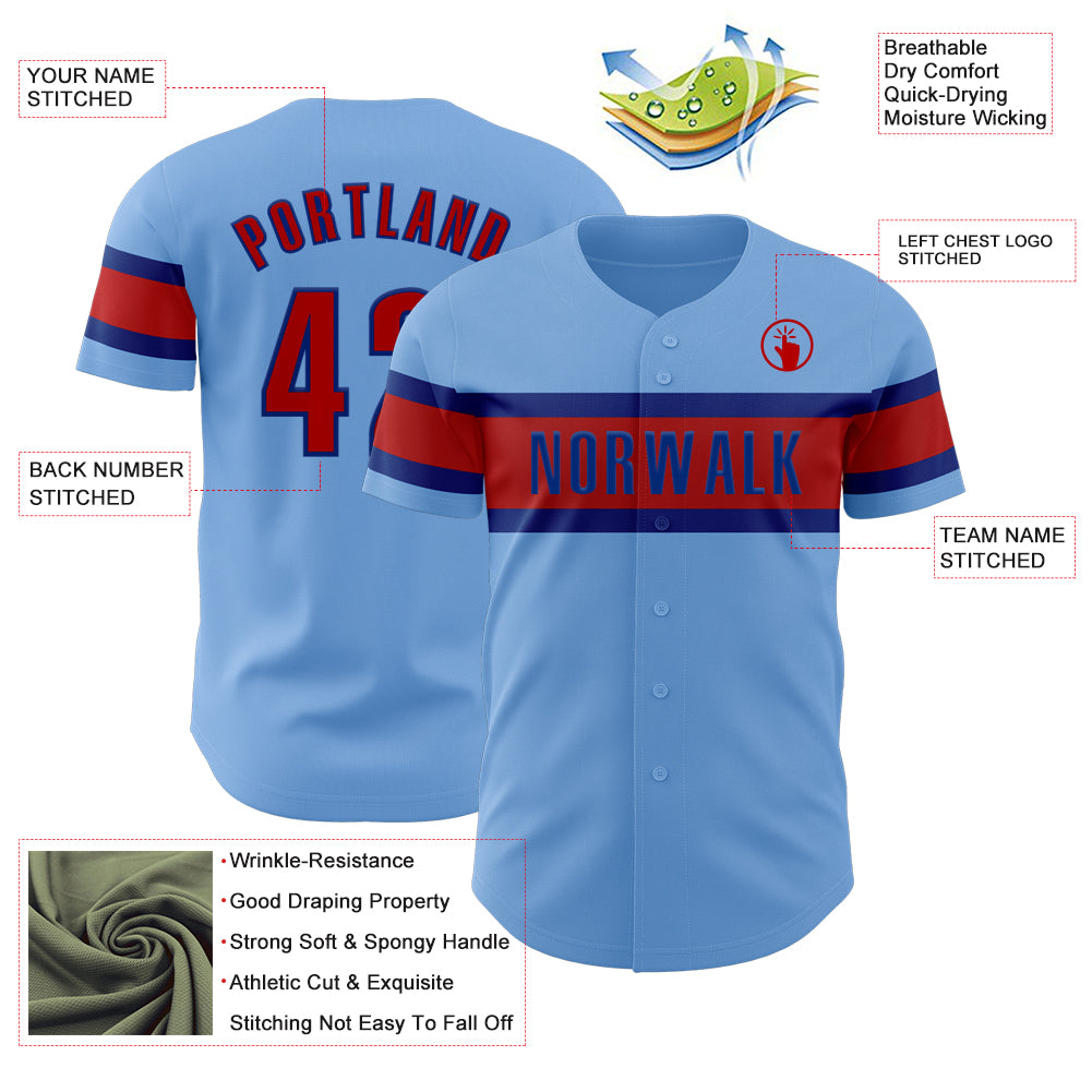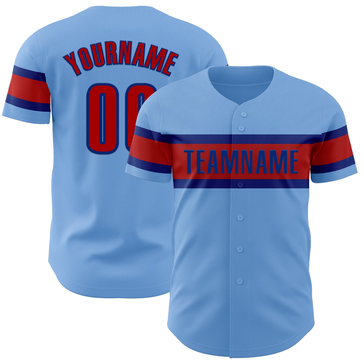Custom Light Blue Red-Royal Authentic Baseball Jersey