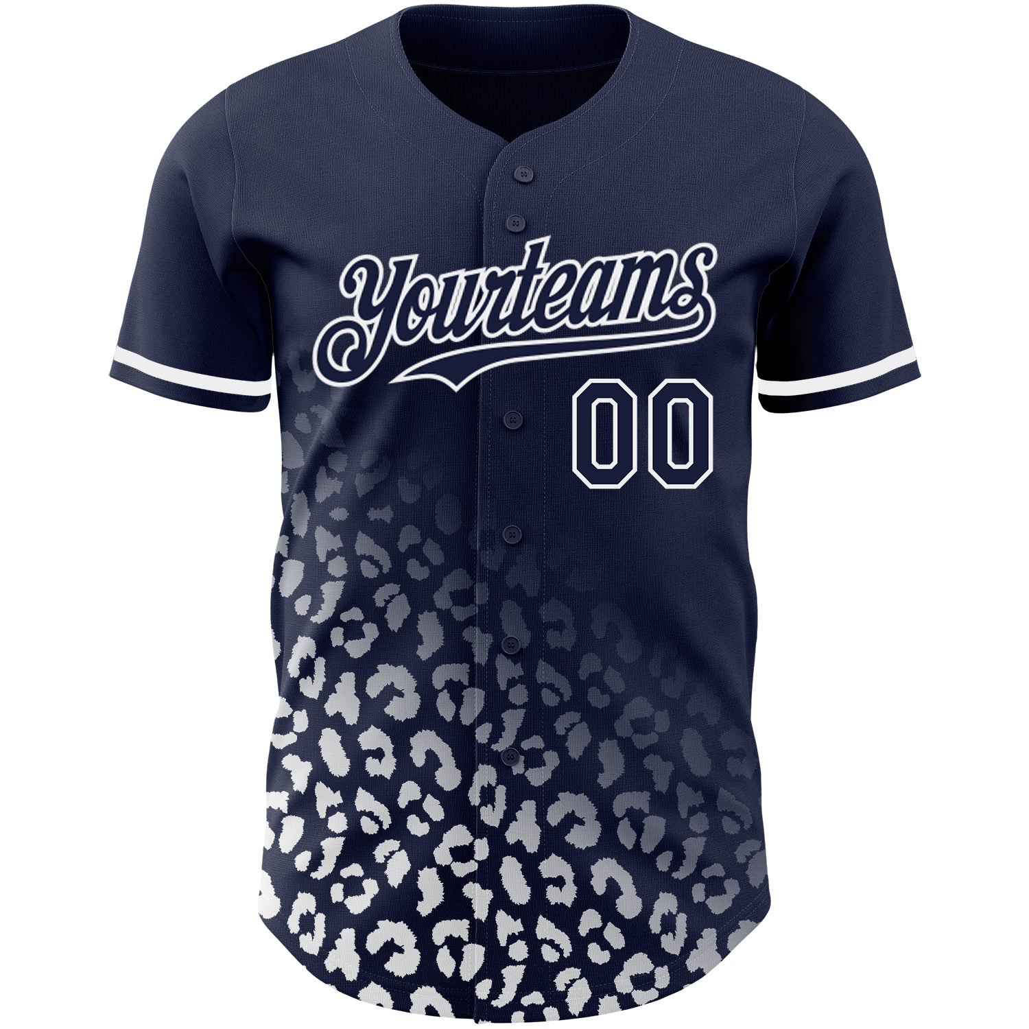 Custom Navy White 3D Pattern Design Leopard Print Fade Fashion Authentic Baseball Jersey