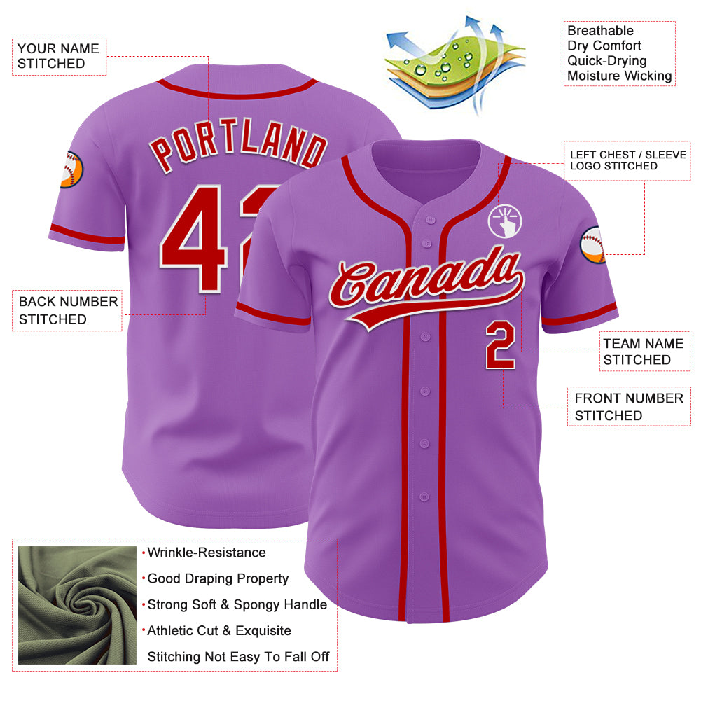 Custom Medium Purple Red-White Authentic Baseball Jersey