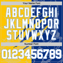 • Charger l'image dans la galerie, Custom Graffiti Pattern White Royal Yellow-Light Blue Scratch Round Neck Sublimation Basketball Suit Jersey