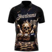 • Charger l'image dans la galerie, Custom Black Vegas Gold-Navy 3D Leopard Print Metal Skull Bowling Performance Polo Shirt