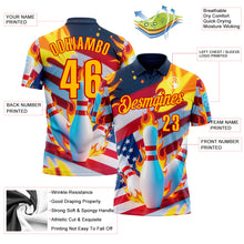 • Charger l'image dans la galerie, Custom Navy Gold-Red 3D American Flag Flame Bowling Performance Polo Shirt