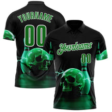 • Charger l'image dans la galerie, Custom Black Grass Green-White 3D Lightning Skull Bowling Performance Polo Shirt
