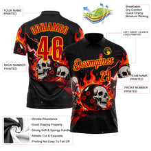 • Charger l'image dans la galerie, Custom Black Red-Yellow 3D Flame Skull Bowling Performance Polo Shirt