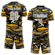 • Charger l'image dans la galerie, Custom Figure White Black-Gold Fluid Art Splash Sublimation Soccer Uniform Jersey