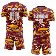 • Charger l'image dans la galerie, Custom Figure White Crimson-Gold Fluid Art Splash Sublimation Soccer Uniform Jersey