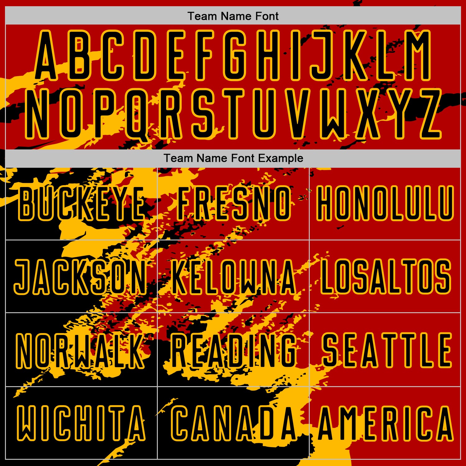 Custom Red Black-Gold Abstract Fragment Art Splash Sports Sublimation Soccer Uniform Jersey