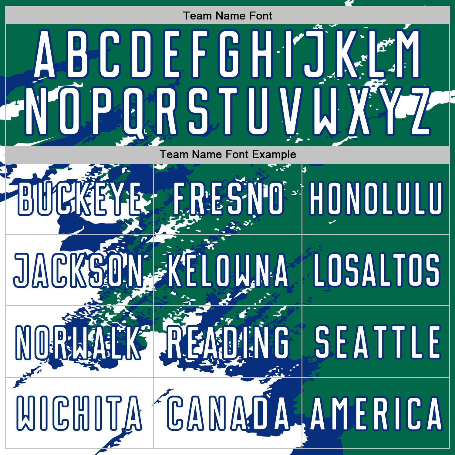 Custom Kelly Green White-Royal Abstract Fragment Art Splash Sports Sublimation Soccer Uniform Jersey