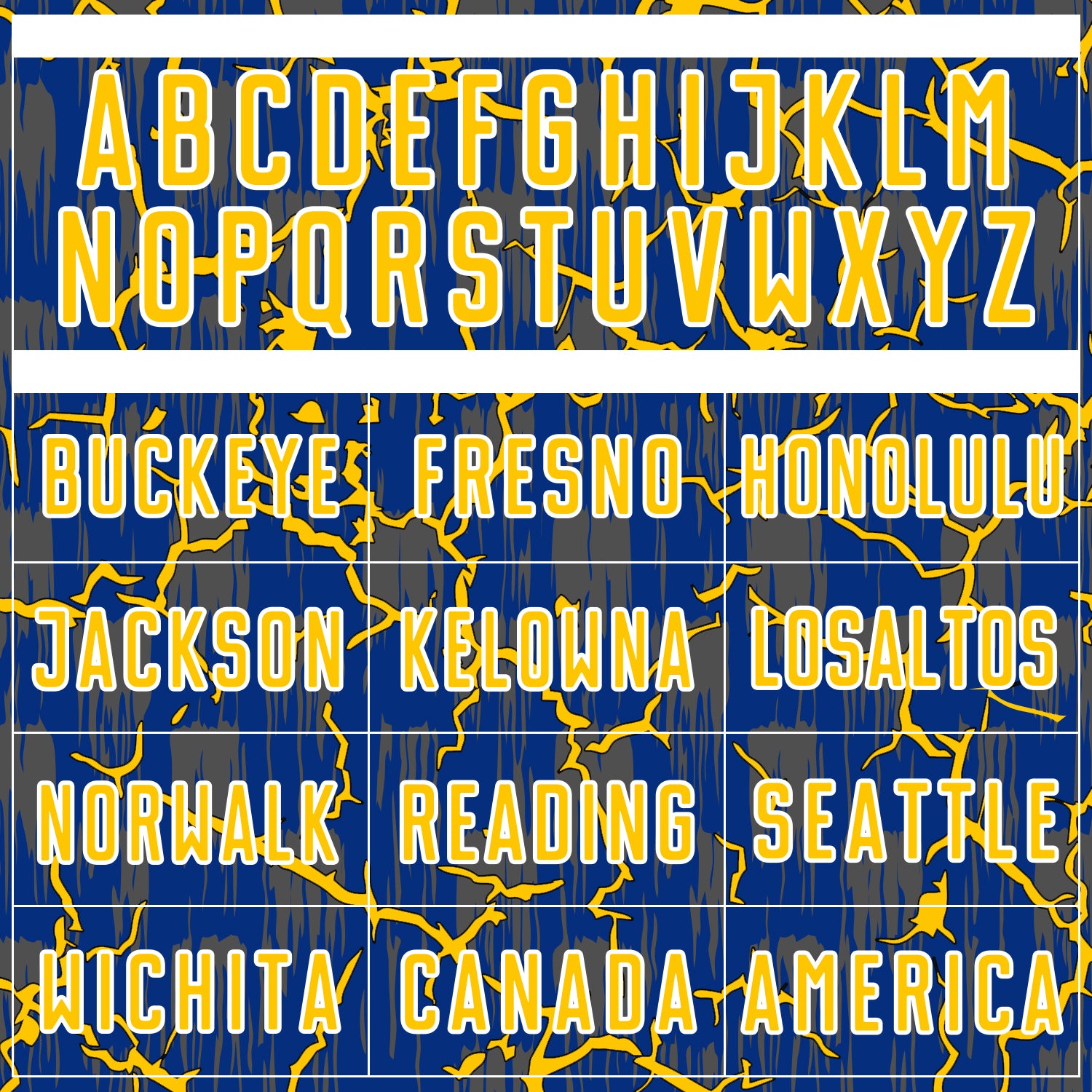 Custom Royal Yellow-White Lightning Sublimation Soccer Uniform Jersey