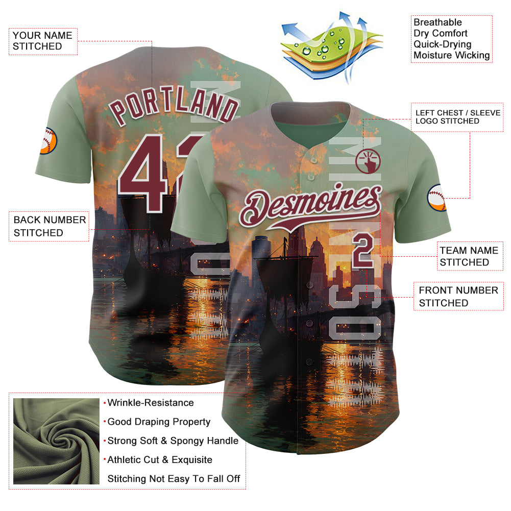 Custom Green Burgundy Black-White Minnesota Lake Of The Isles Vikings City Symbol Authentic Baseball Jersey