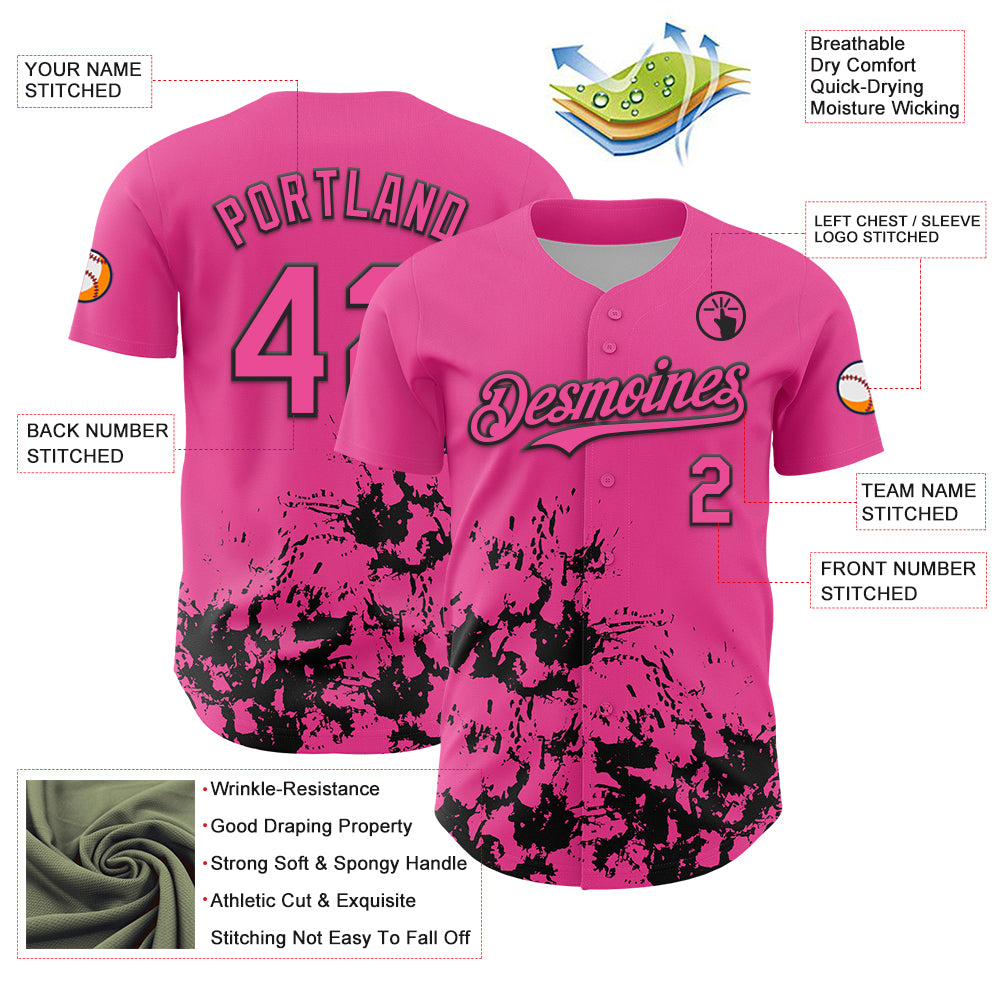 Custom Pink Black Splatter Authentic Baseball Jersey