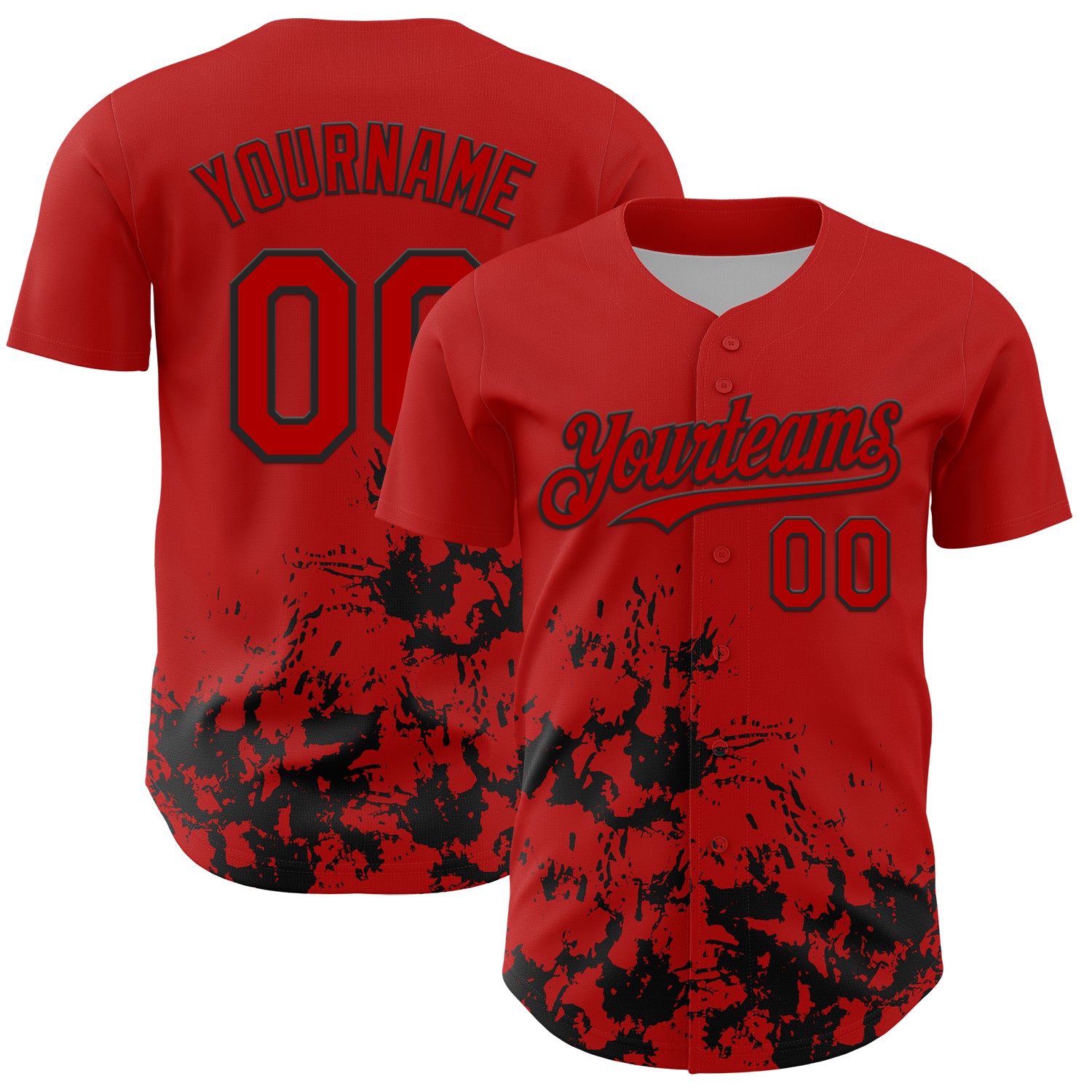 Custom Red Black Splatter Authentic Baseball Jersey