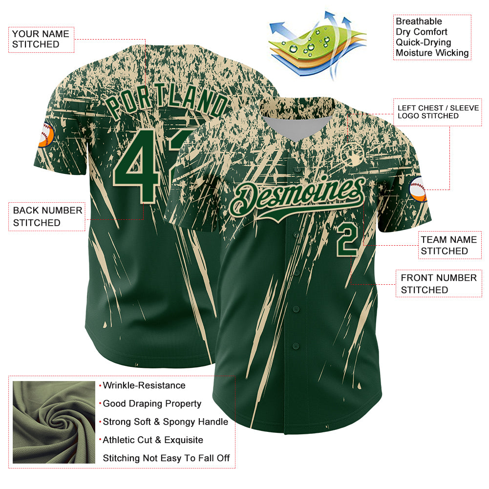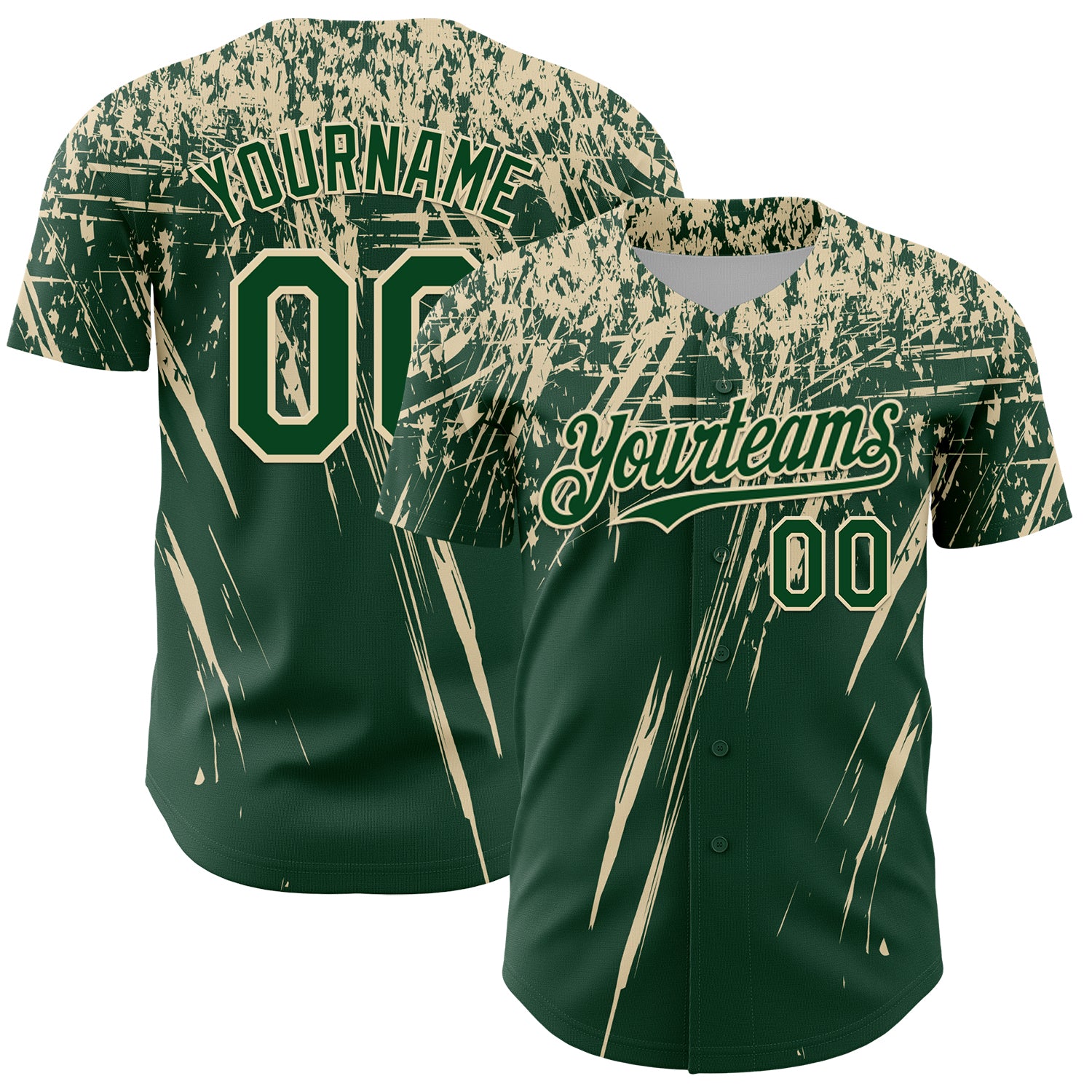 Custom Green Cream Distressed Scratch Brush Stroke Authentic Baseball Jersey
