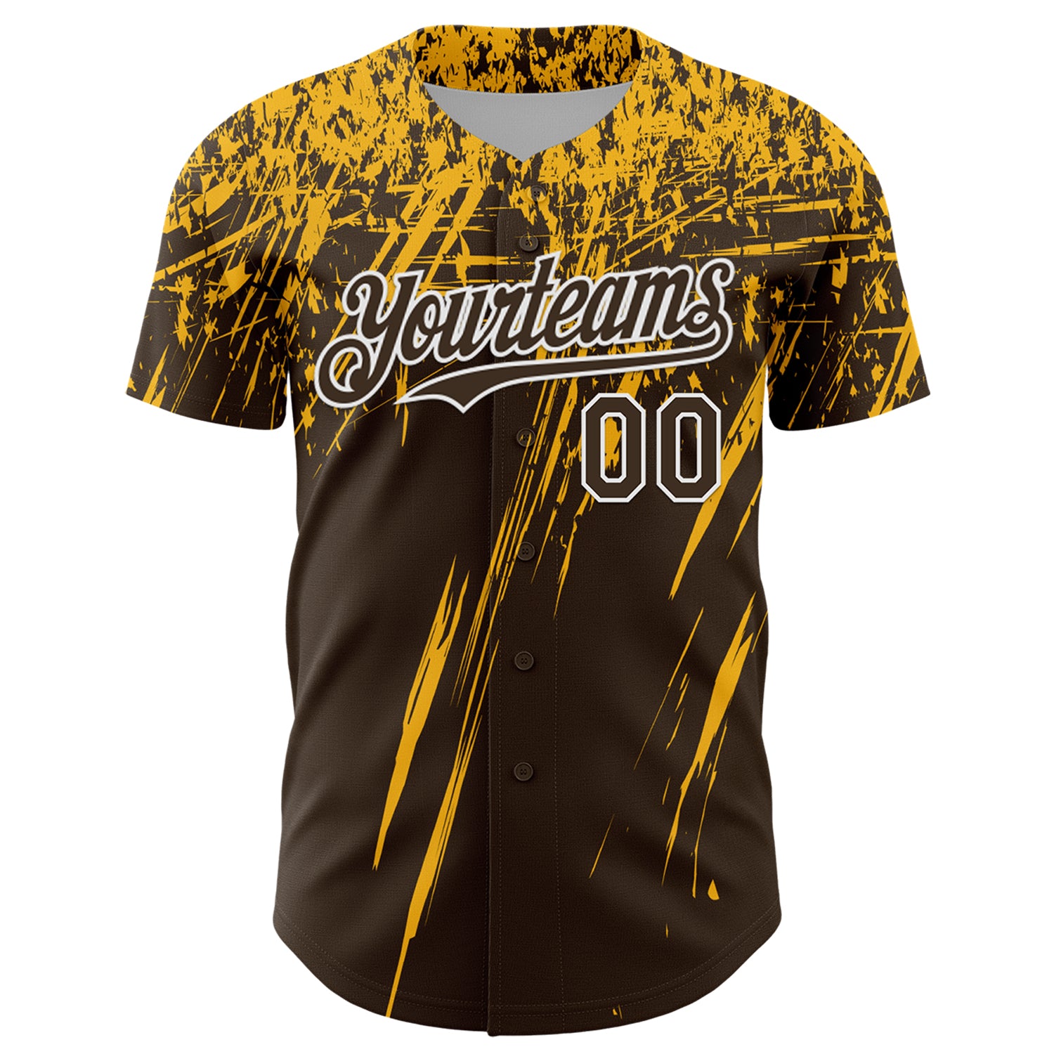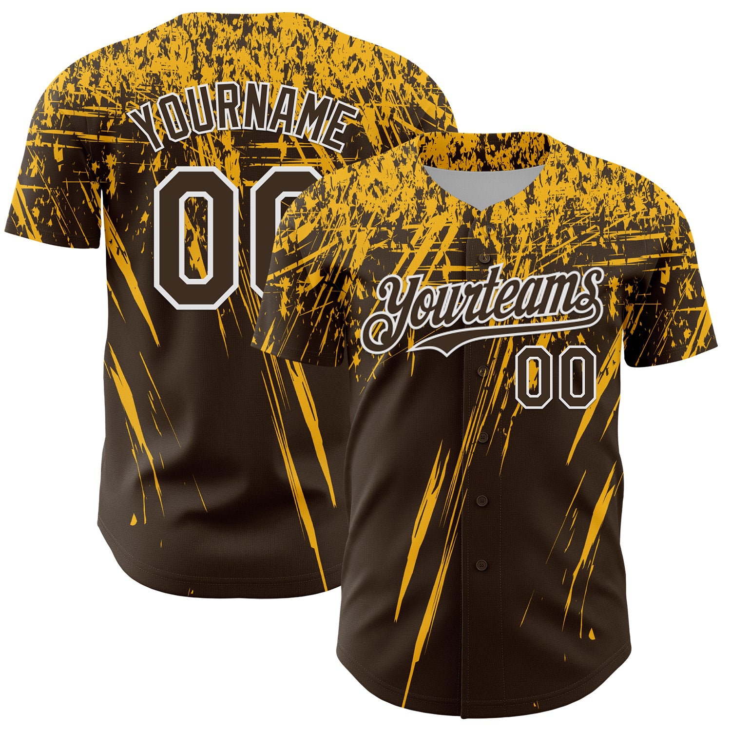 Custom Brown Gold-White Distressed Scratch Brush Stroke Authentic Baseball Jersey