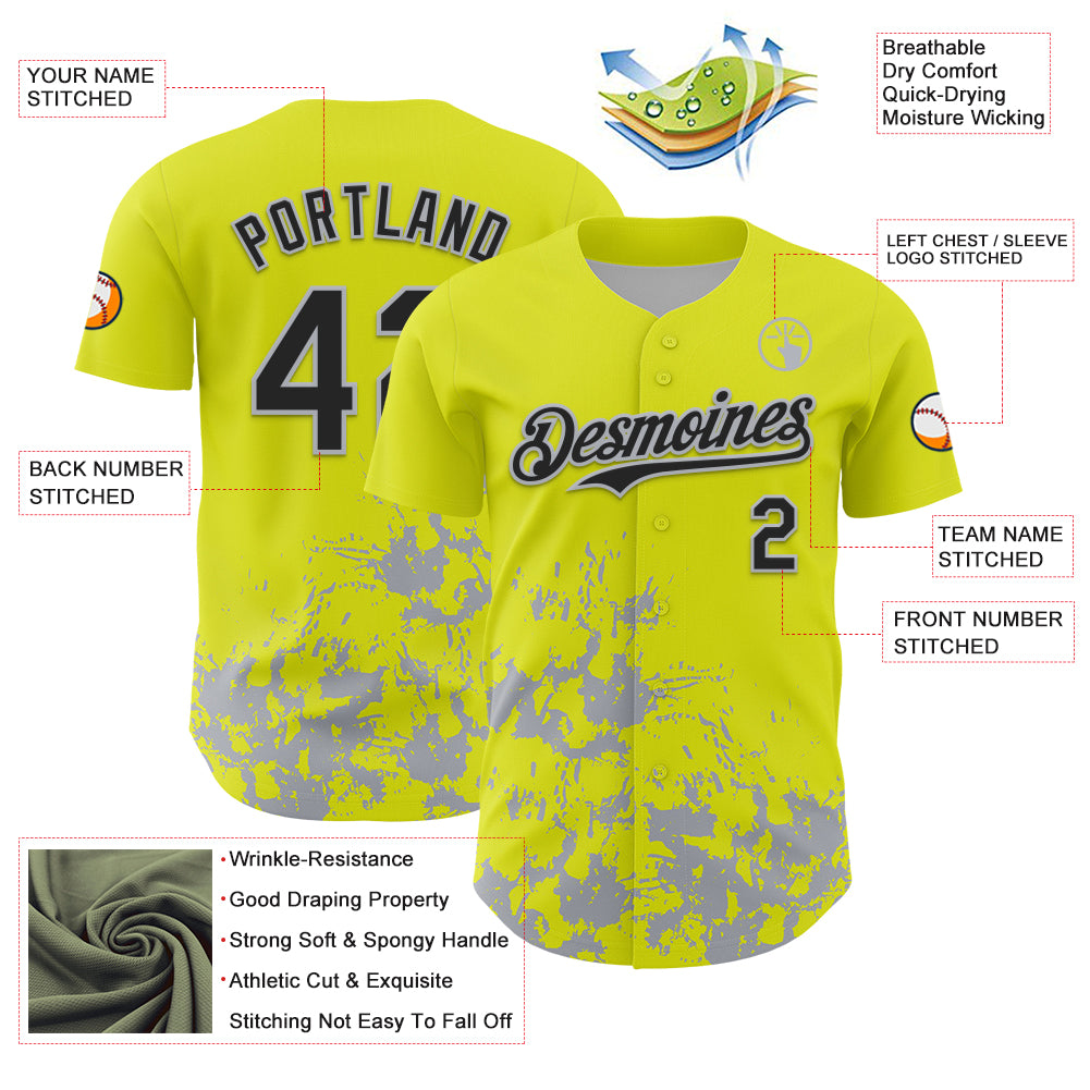 Custom Neon Yellow Black-Gray Splatter Authentic Baseball Jersey