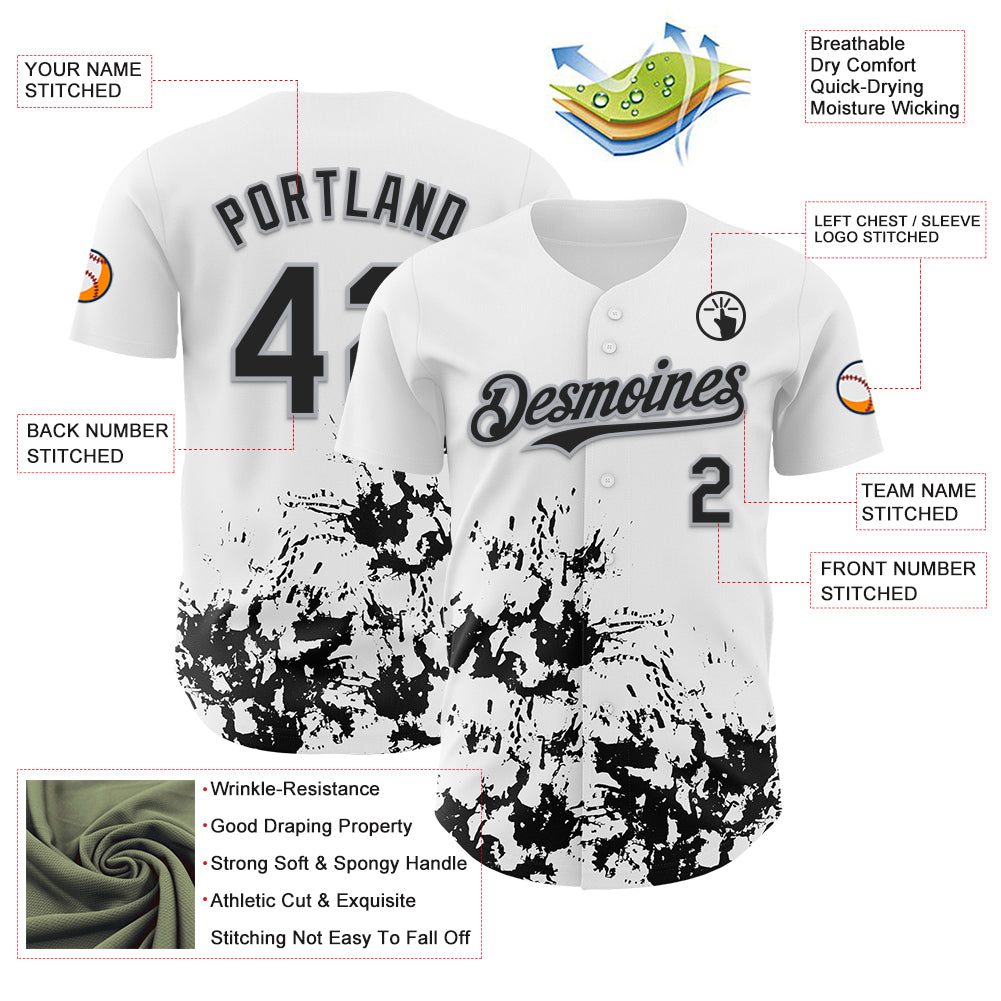 Custom White Black-Gray Splatter Authentic Baseball Jersey