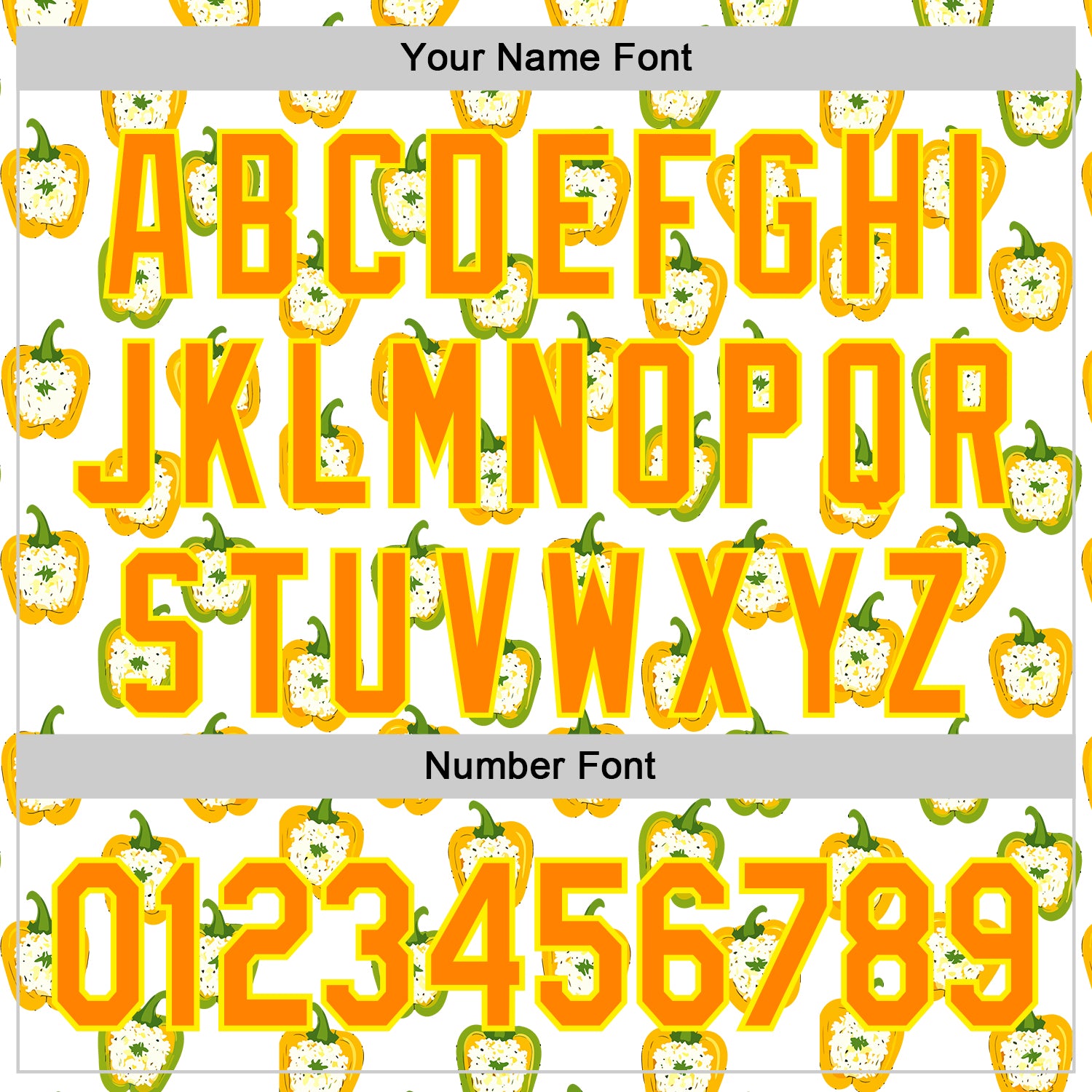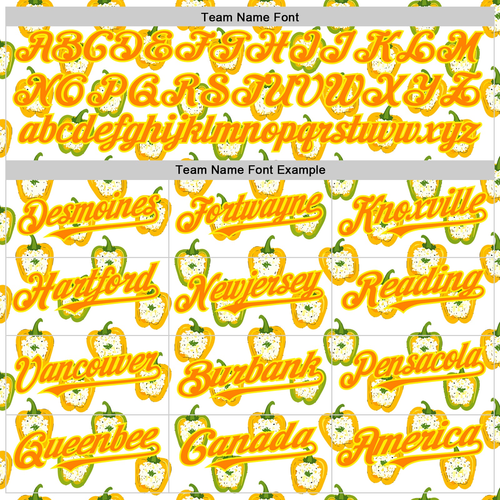 Custom White Bay Orange-Light Yellow 3D Pattern Design Foodie Rice Stuffed Pepper Vegetable Authentic Baseball Jersey