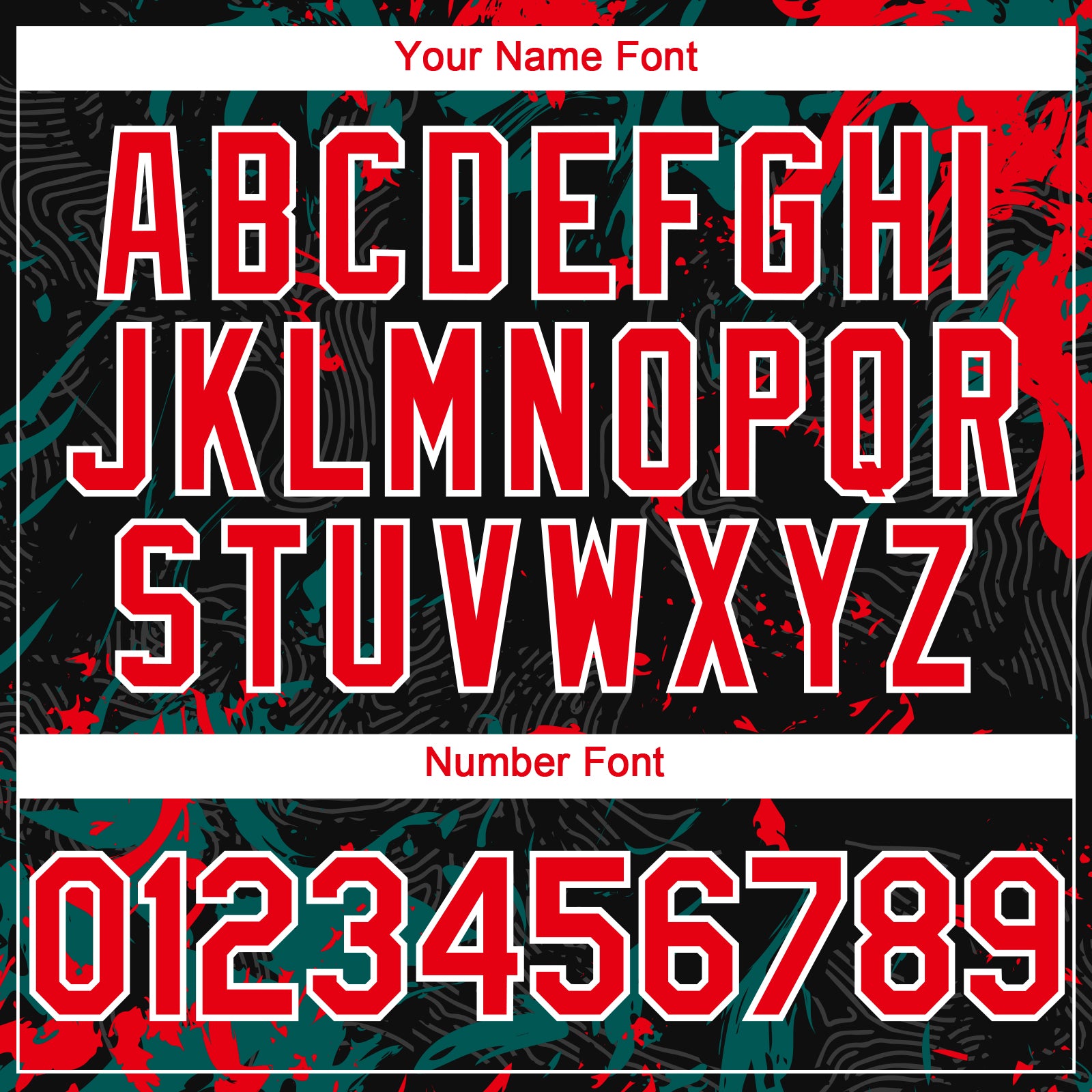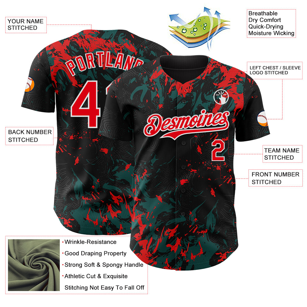 Custom Black Fire Red Midnight Green-White 3D Pattern Design Splash Authentic Baseball Jersey
