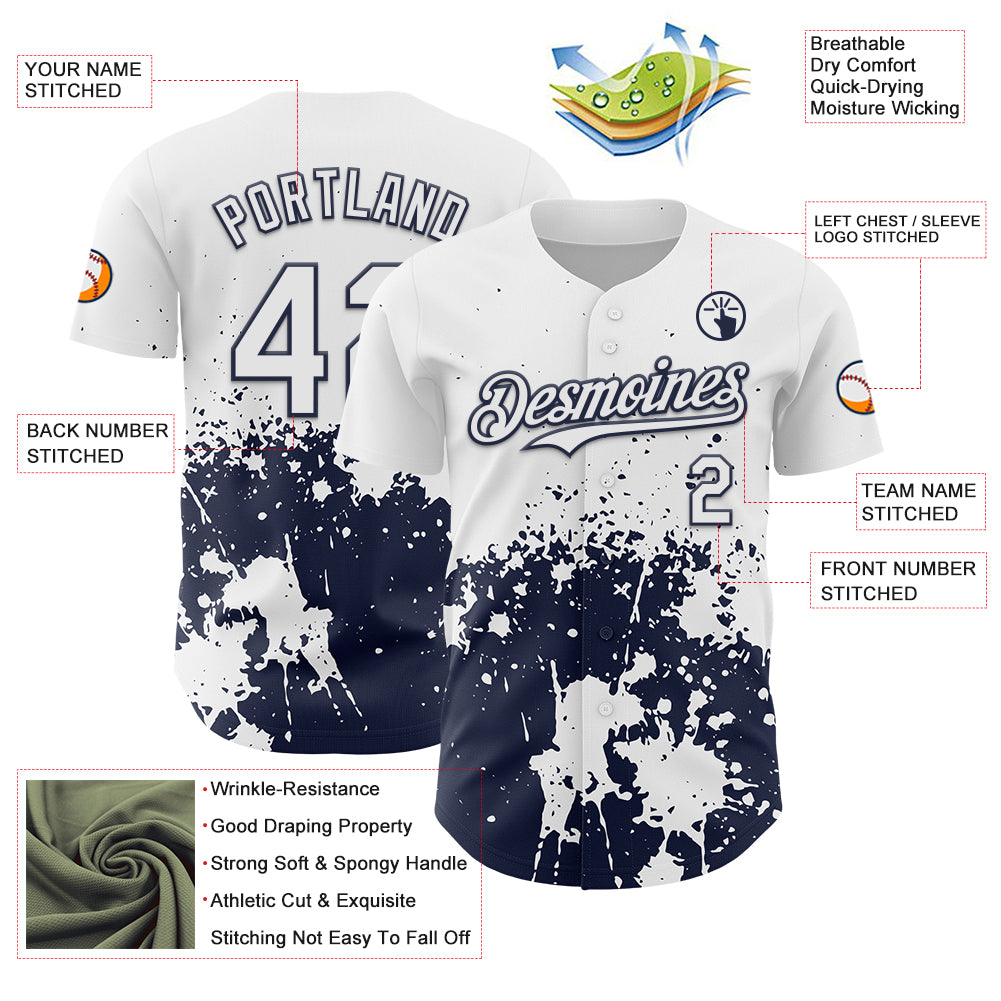 Custom White Navy Abstract Splatter Grunge Authentic Baseball Jersey
