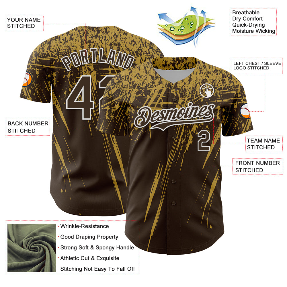 Custom Brown Old Gold-White Distressed Scratch Brush Stroke Authentic Baseball Jersey