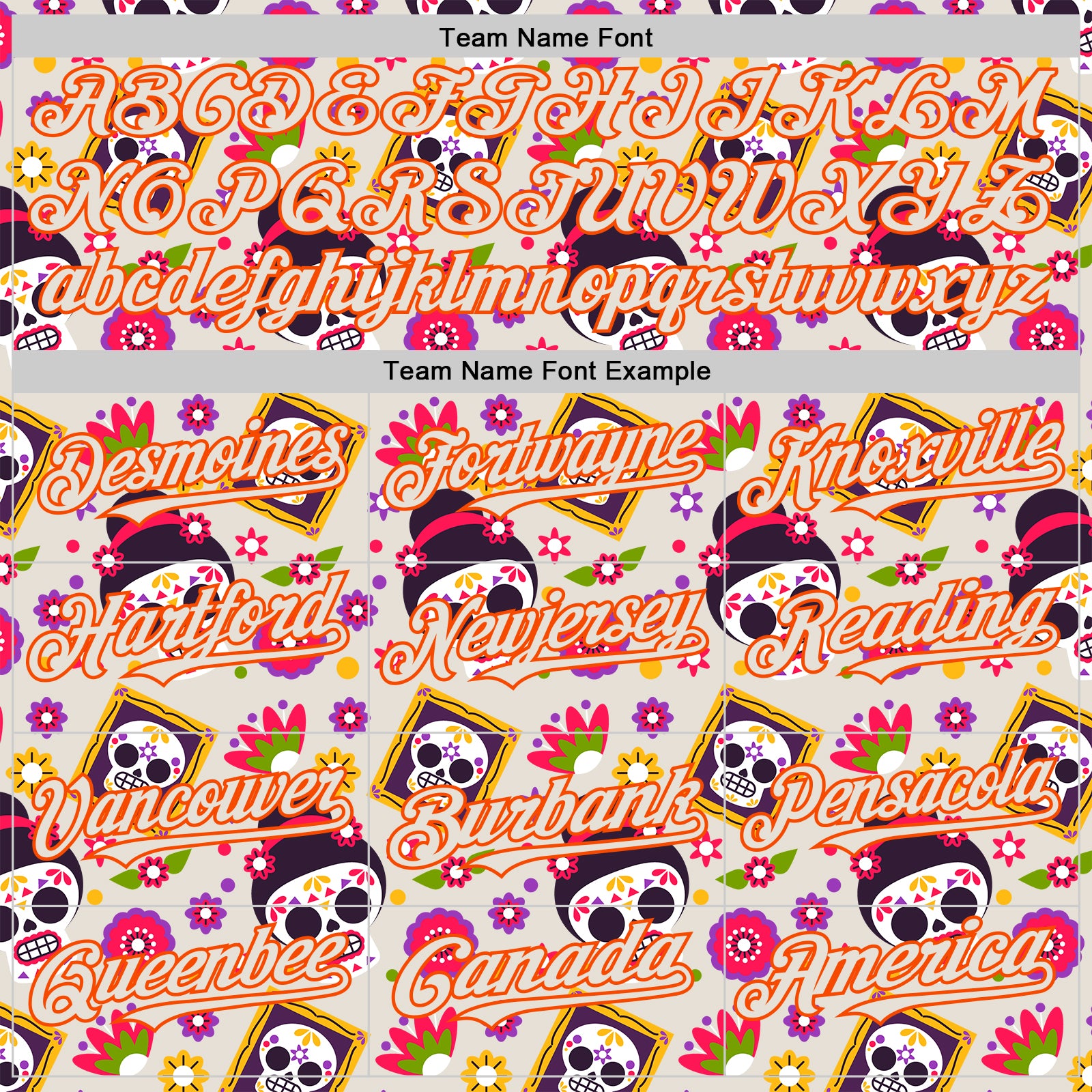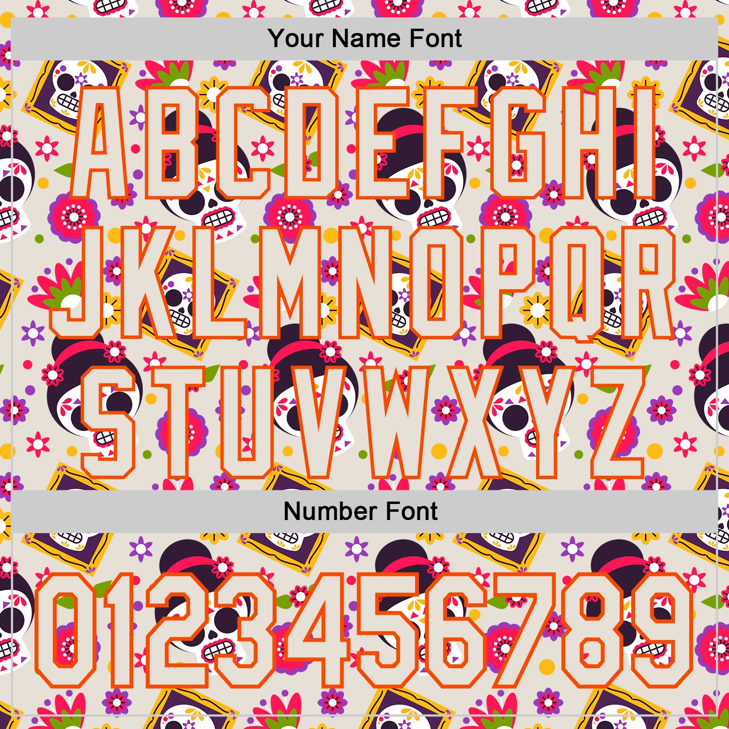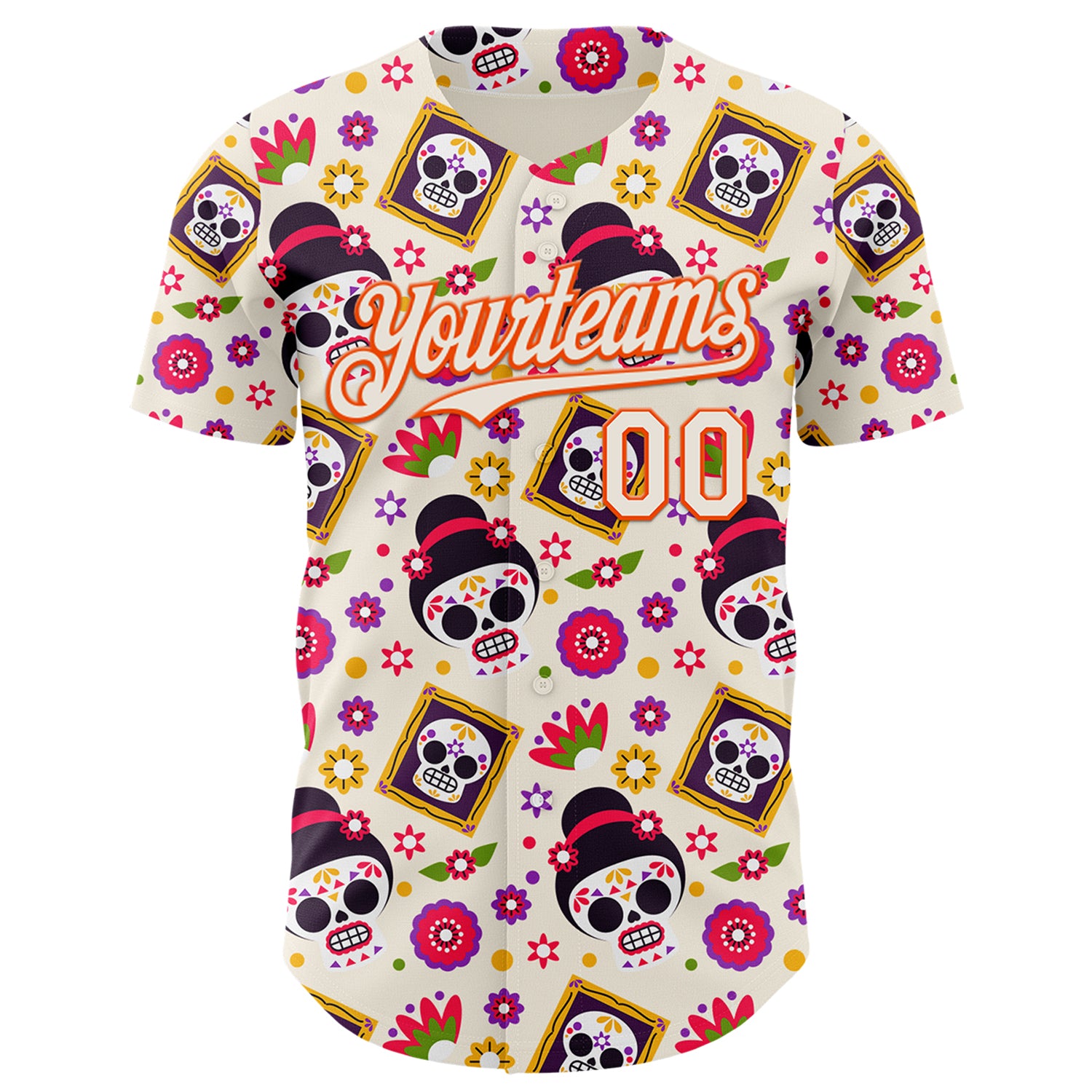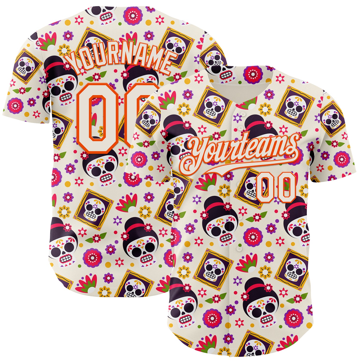 Custom Cream Orange Sugar Skull Day of the Dead Mexican Folk Art Authentic Baseball Jersey