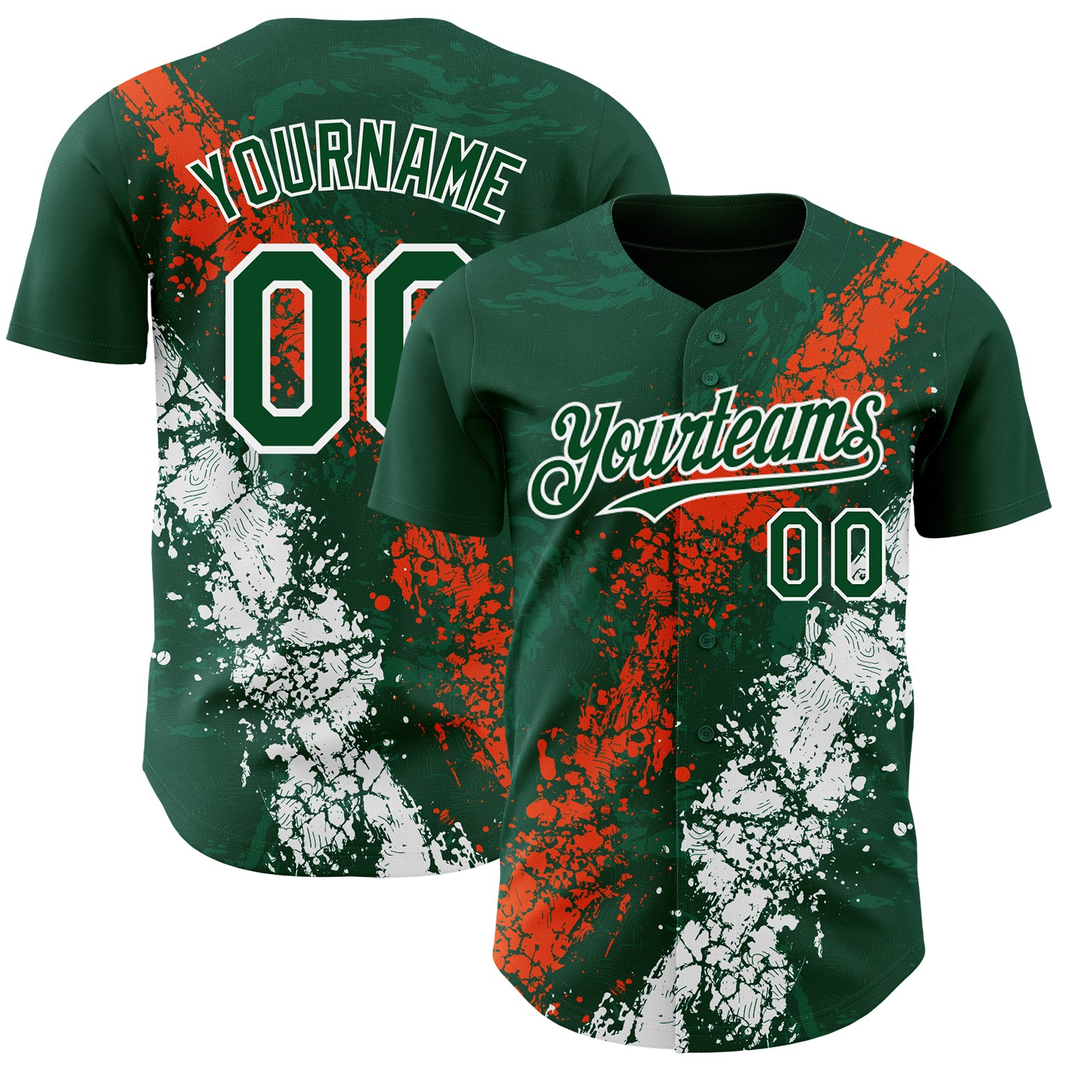 Custom Green Orange-White 3D Pattern Design Splash Authentic Baseball Jersey