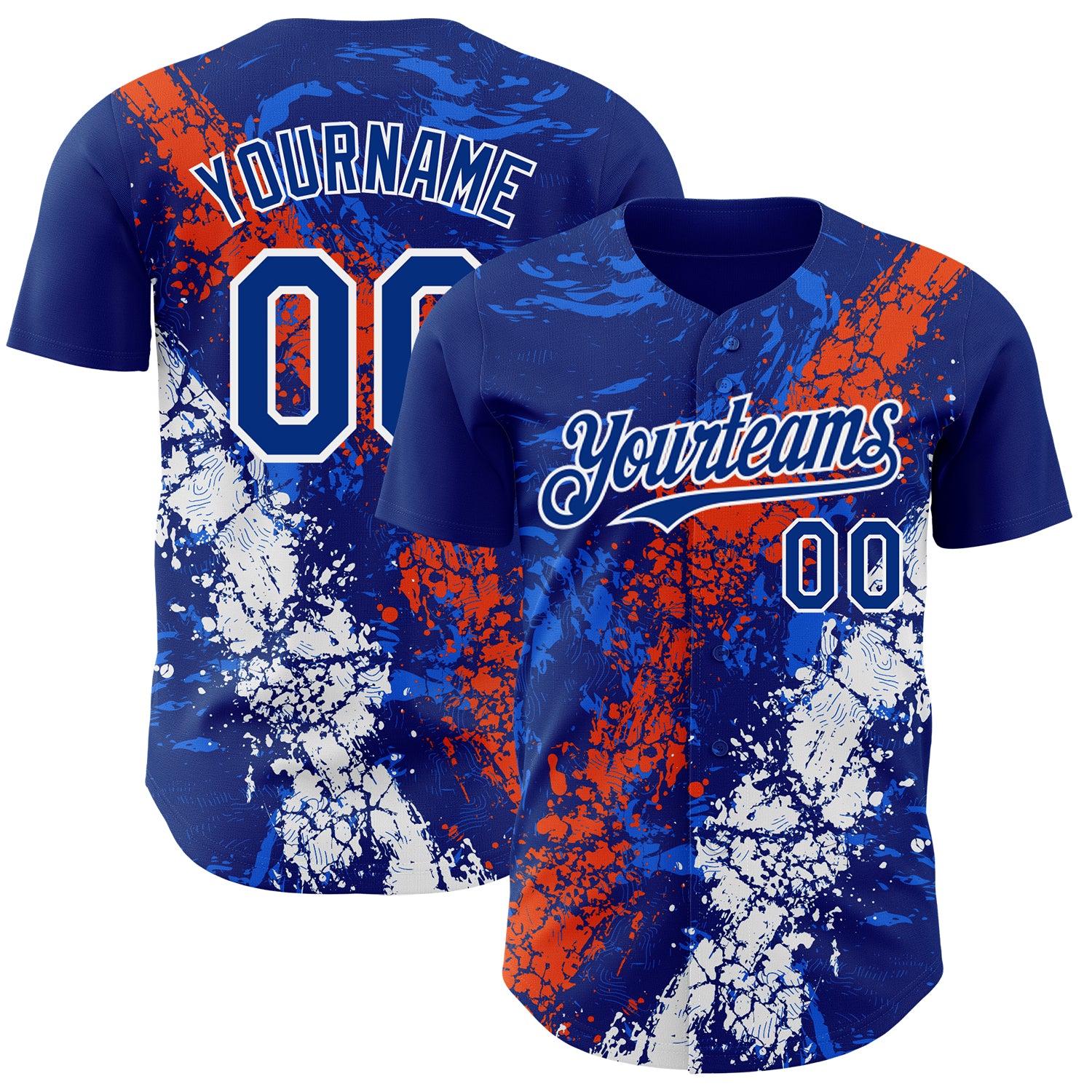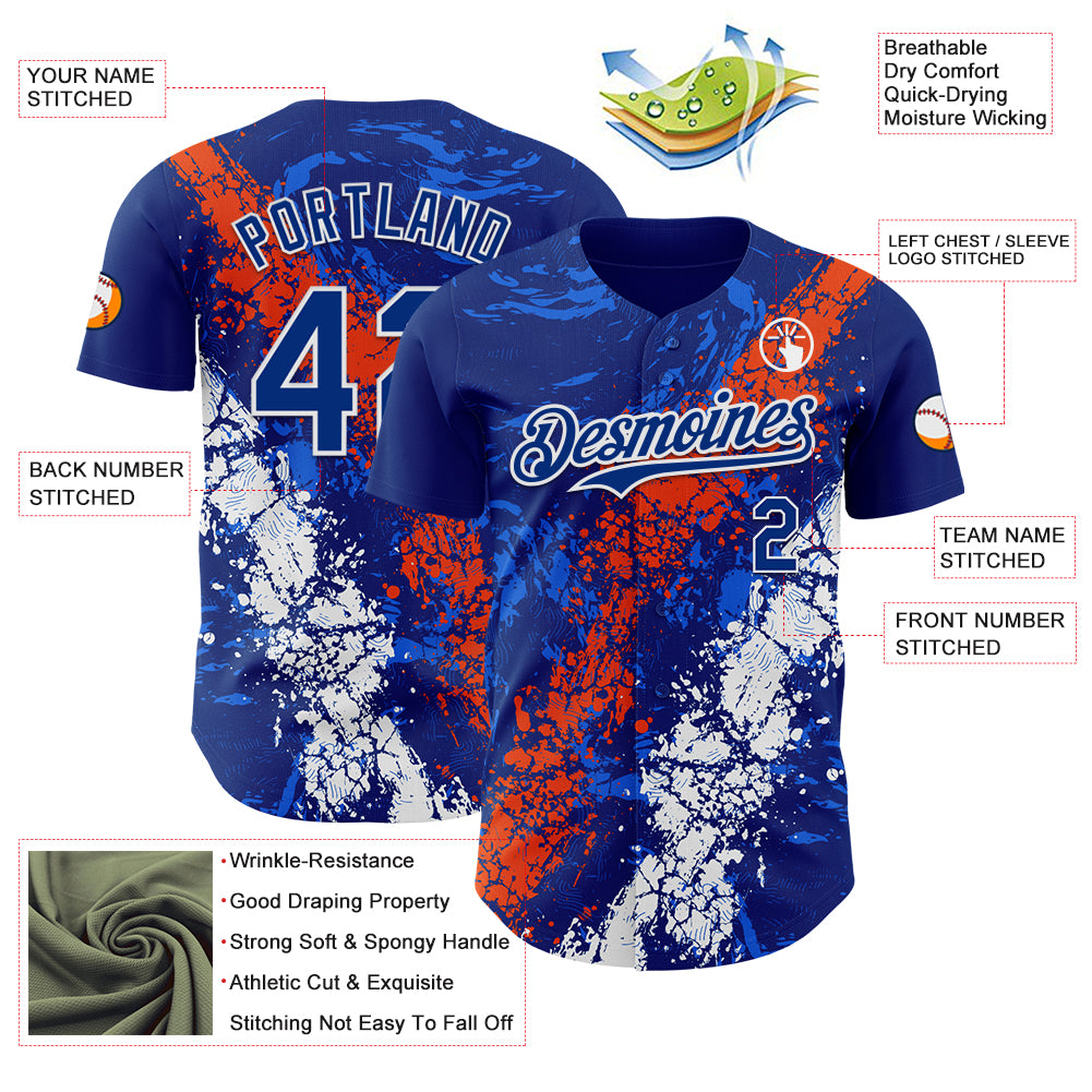 Custom Royal Orange-White 3D Pattern Design Splash Authentic Baseball Jersey