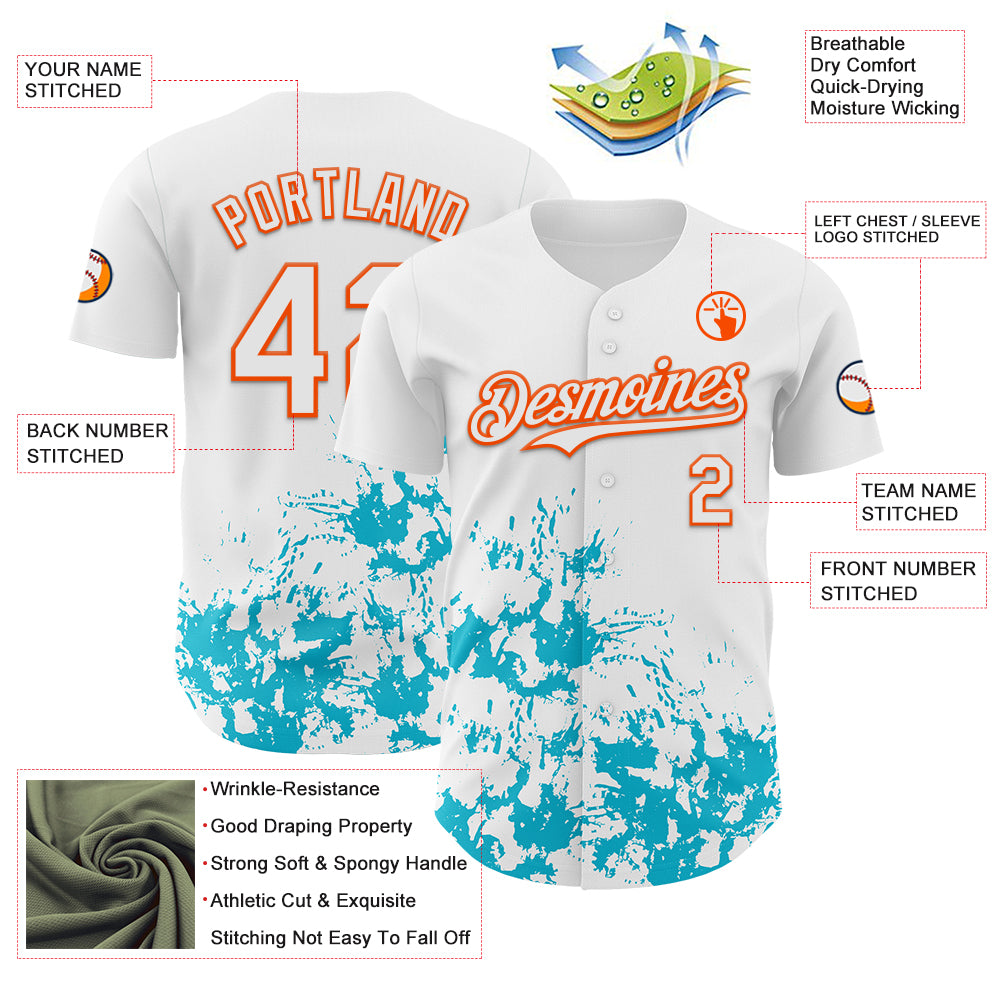 Custom White Orange-Lakes Blue Splatter Authentic Baseball Jersey