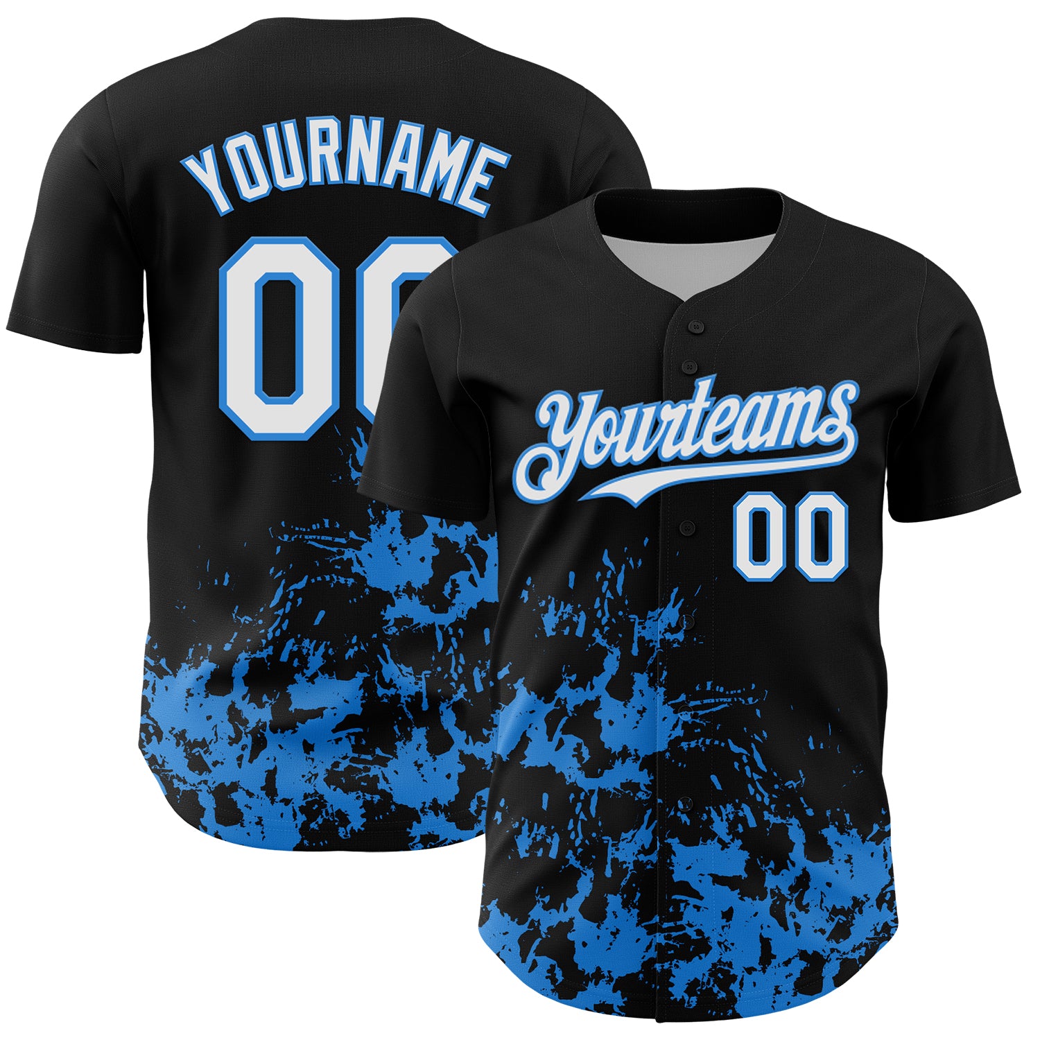 Custom Black White-Powder Blue Splatter Authentic Baseball Jersey