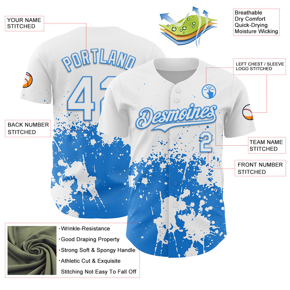 Custom White Powder Blue Abstract Splatter Grunge Authentic Baseball Jersey