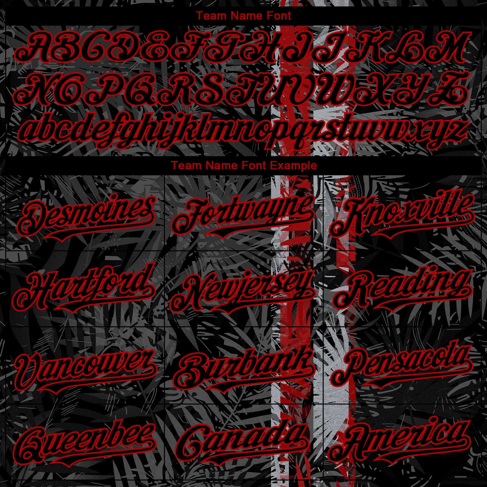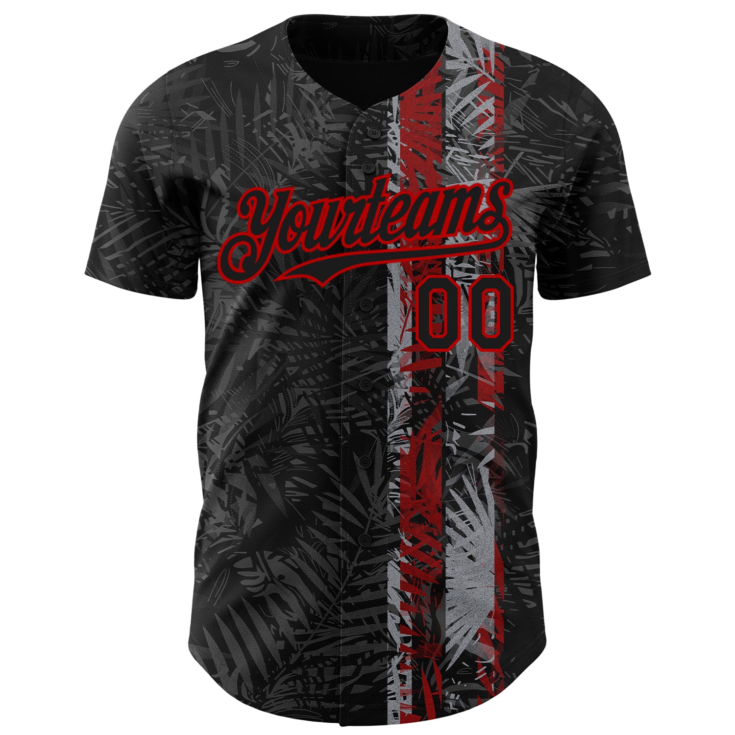 Custom Black Red 3D Hawaii Tropical Palm Leaves Authentic Baseball Jersey