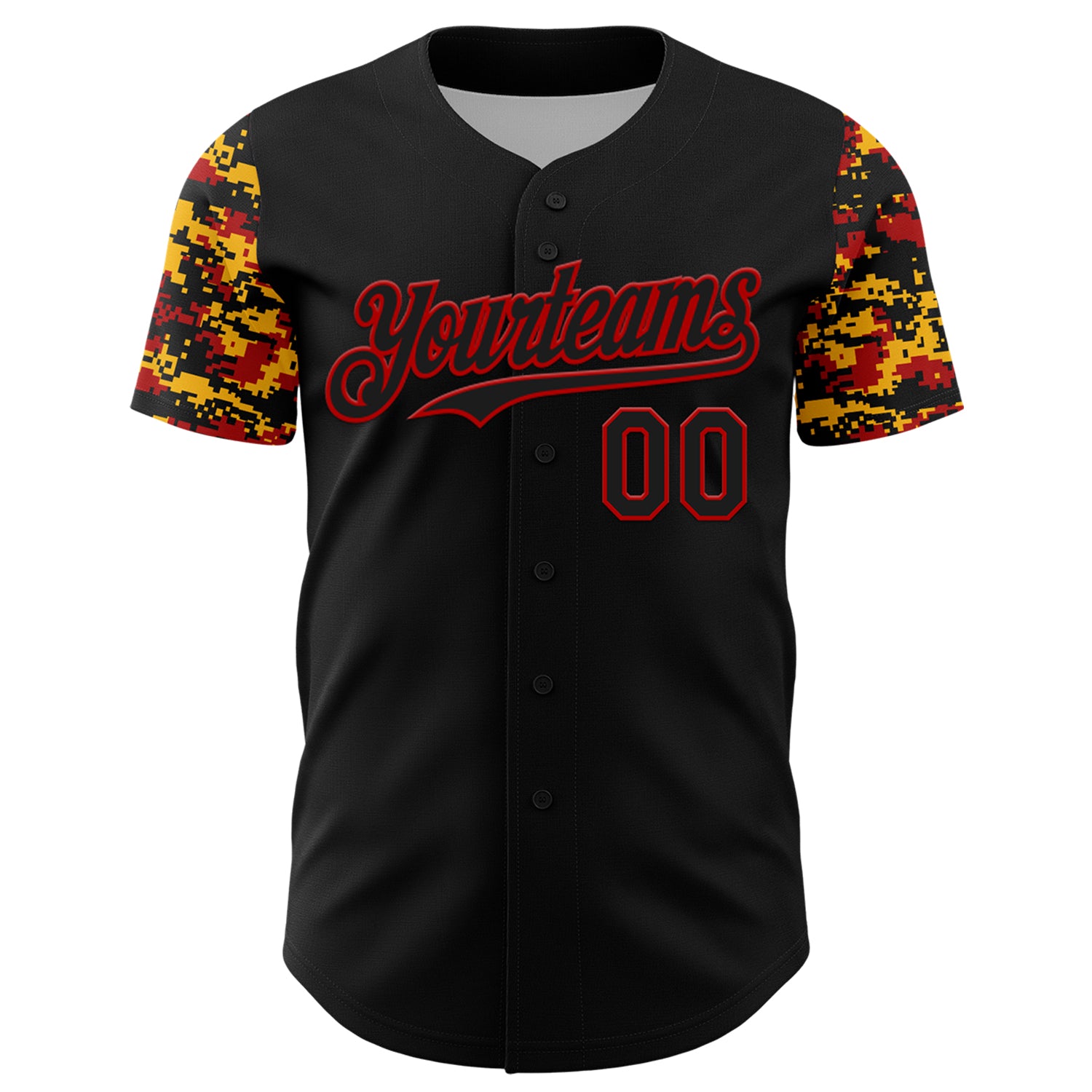 Custom Black Red-Gold Digital Camo Two Tone Authentic Baseball Jersey