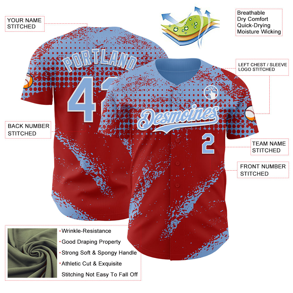 Custom Light Blue Red-White 3D Pattern Design Splash Grunge Fragment Authentic Baseball Jersey