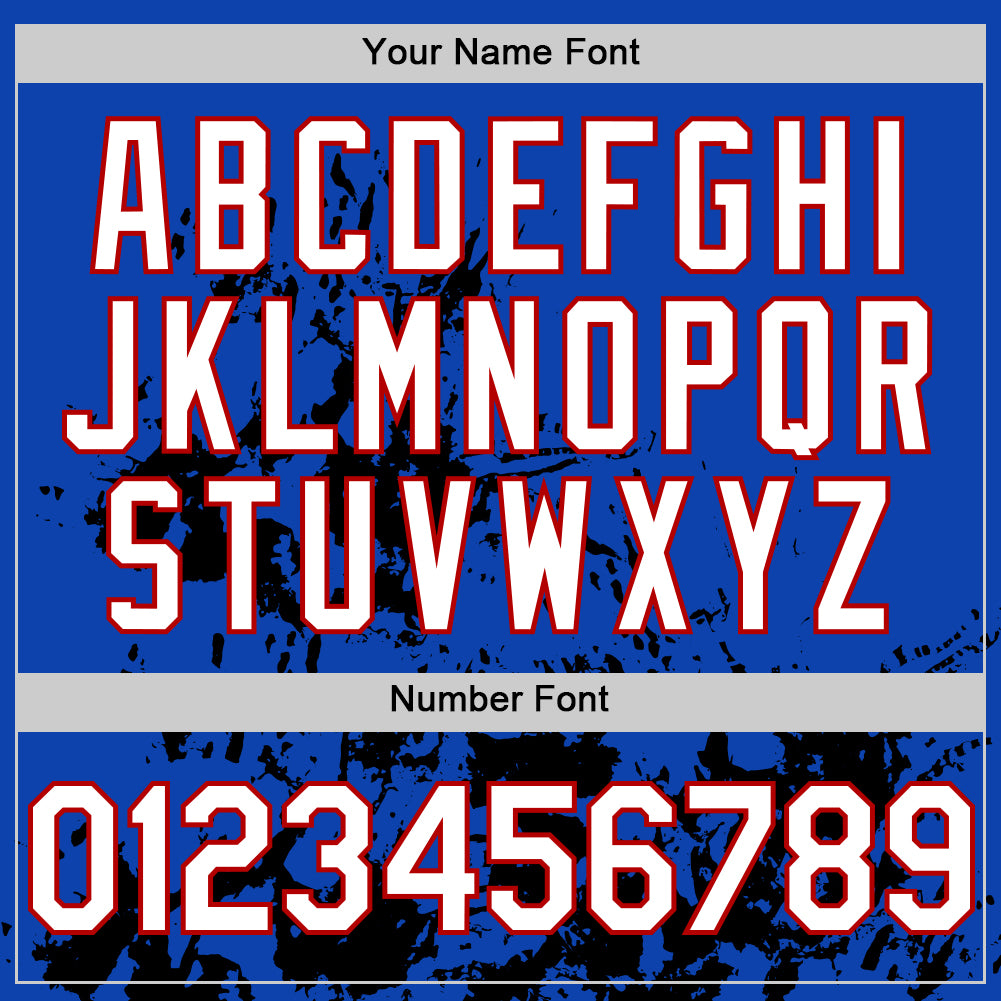 Custom Thunder Blue White Red-Black Splatter Authentic Baseball Jersey
