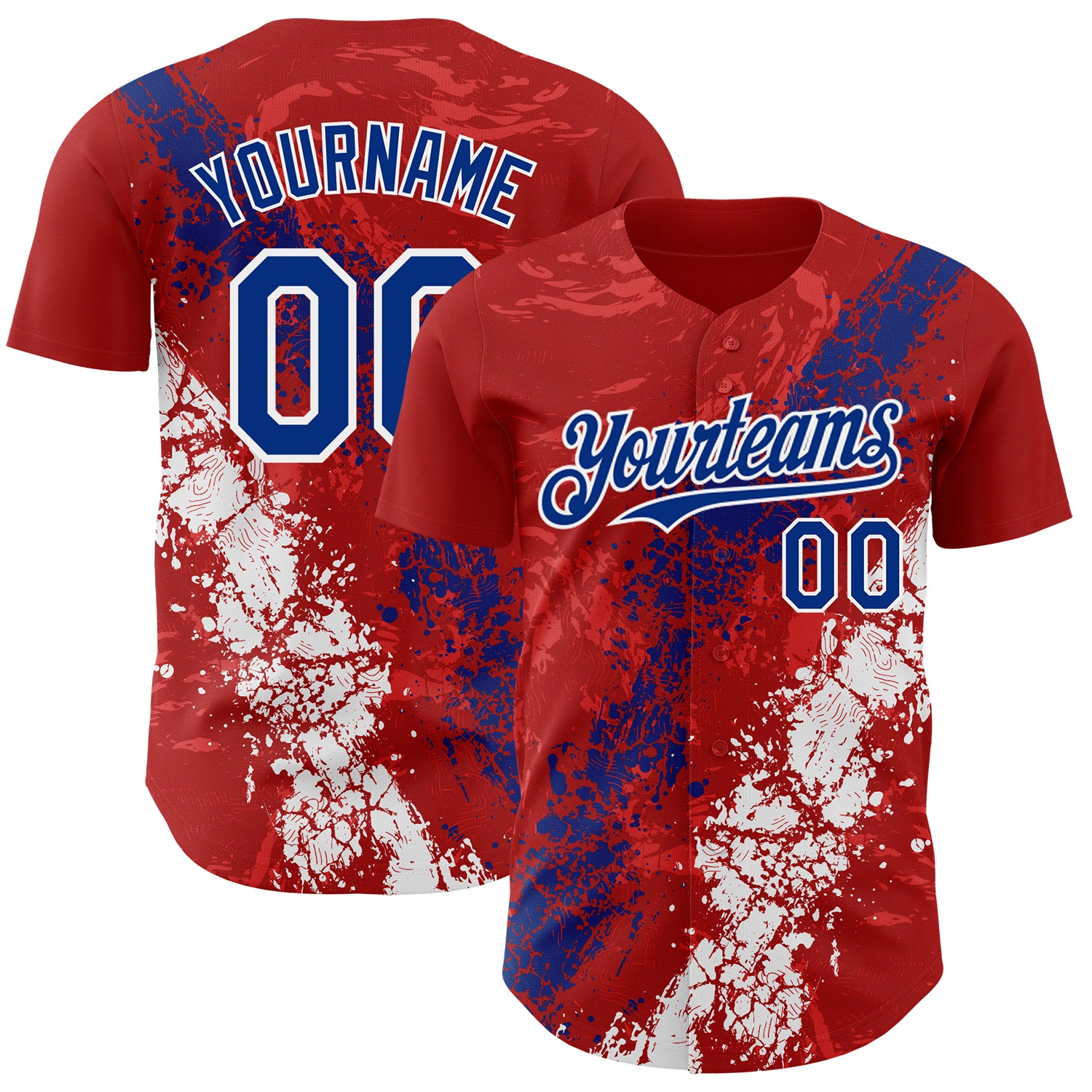 Custom Red Royal-White 3D Pattern Design Splash Authentic Baseball Jersey