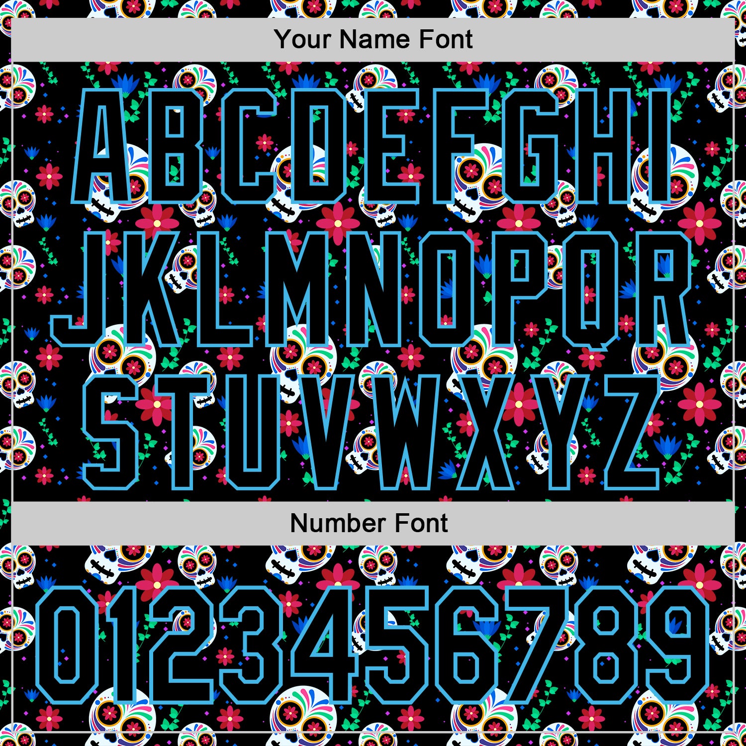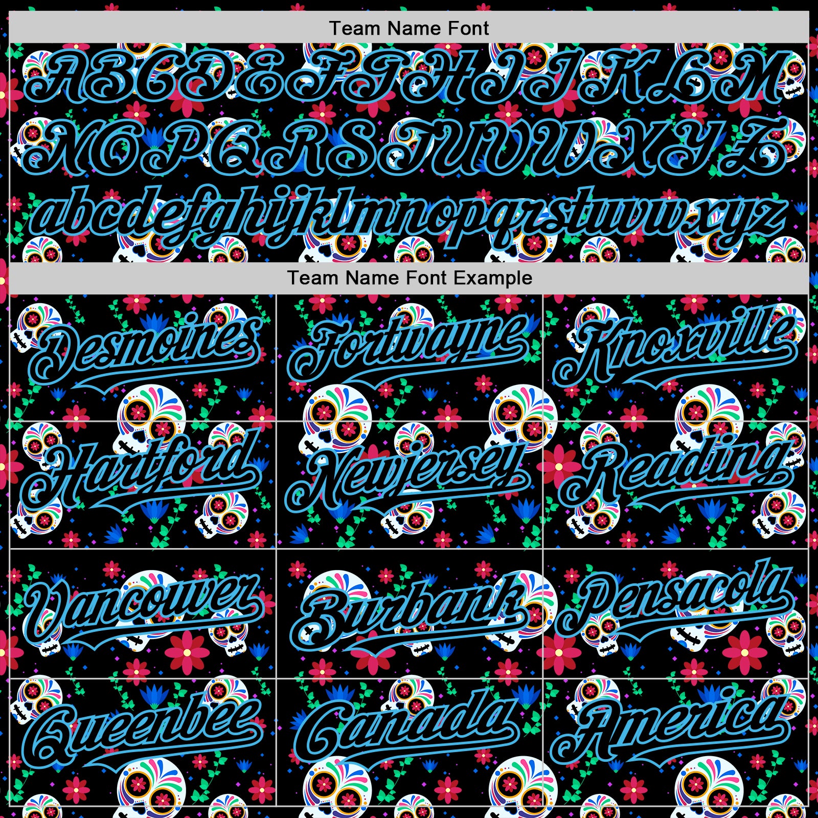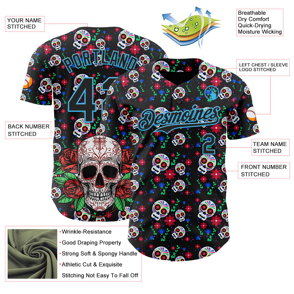 Custom Black Sky Blue Sugar Skull Day of the Dead Mexican Folk Art Authentic Baseball Jersey