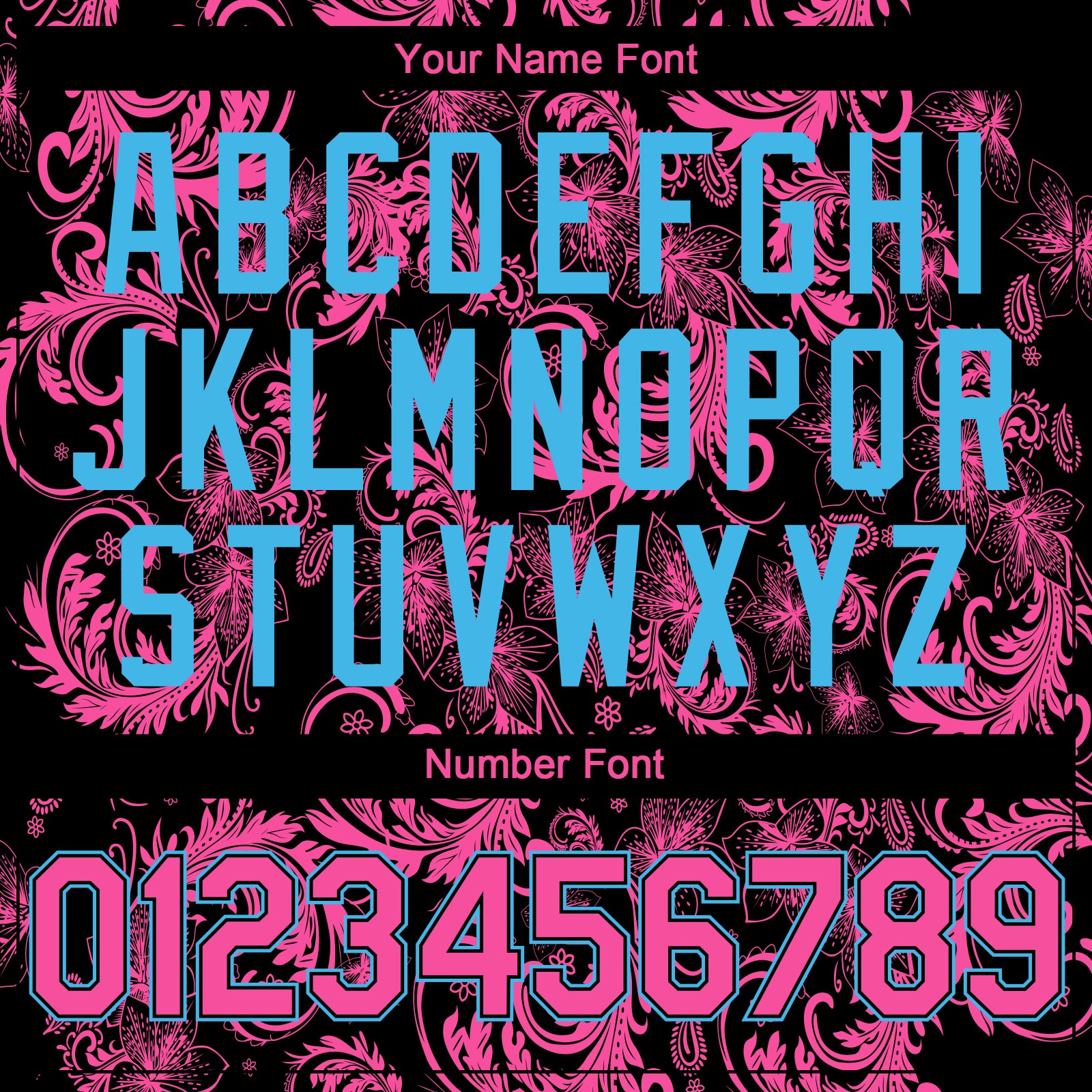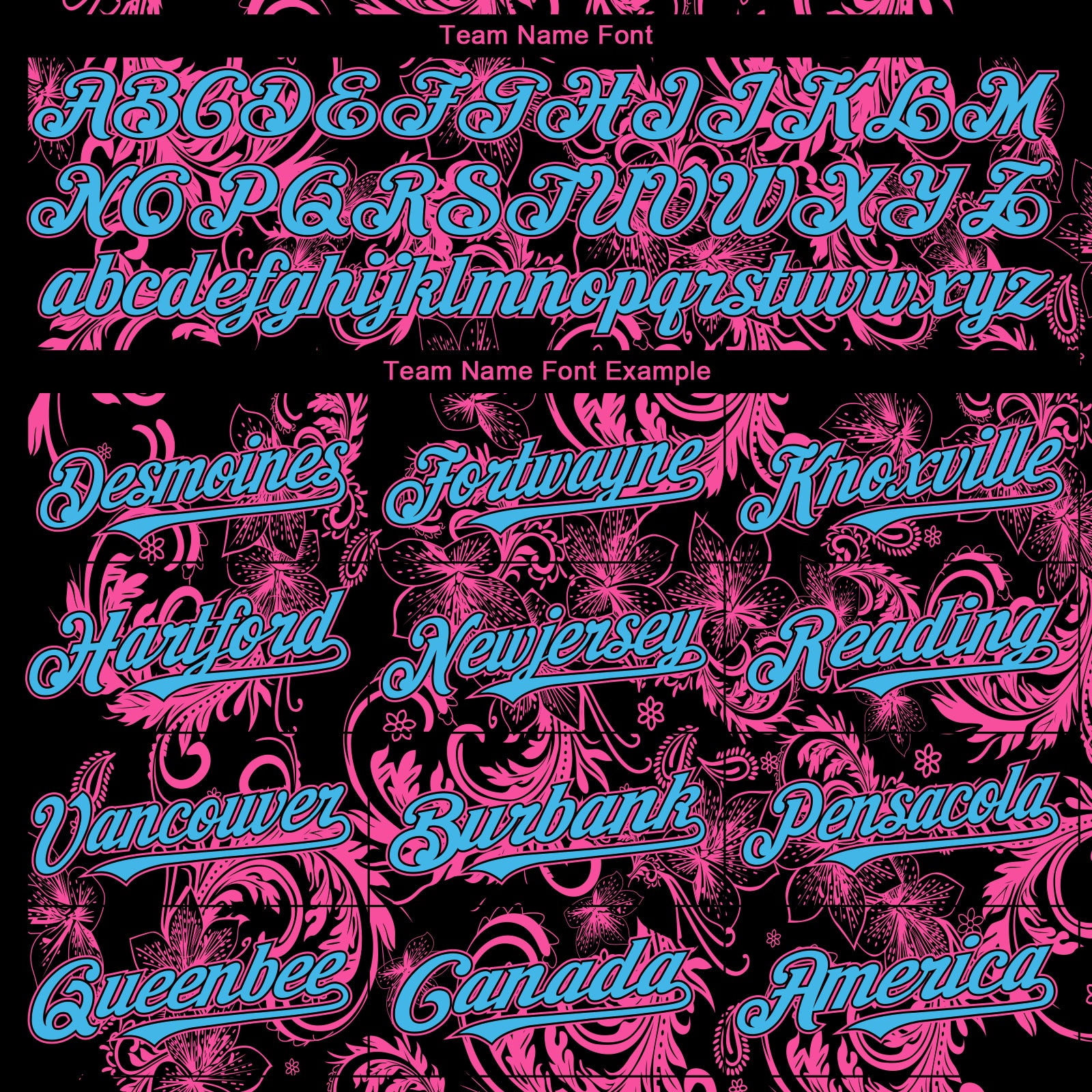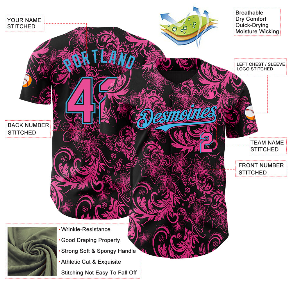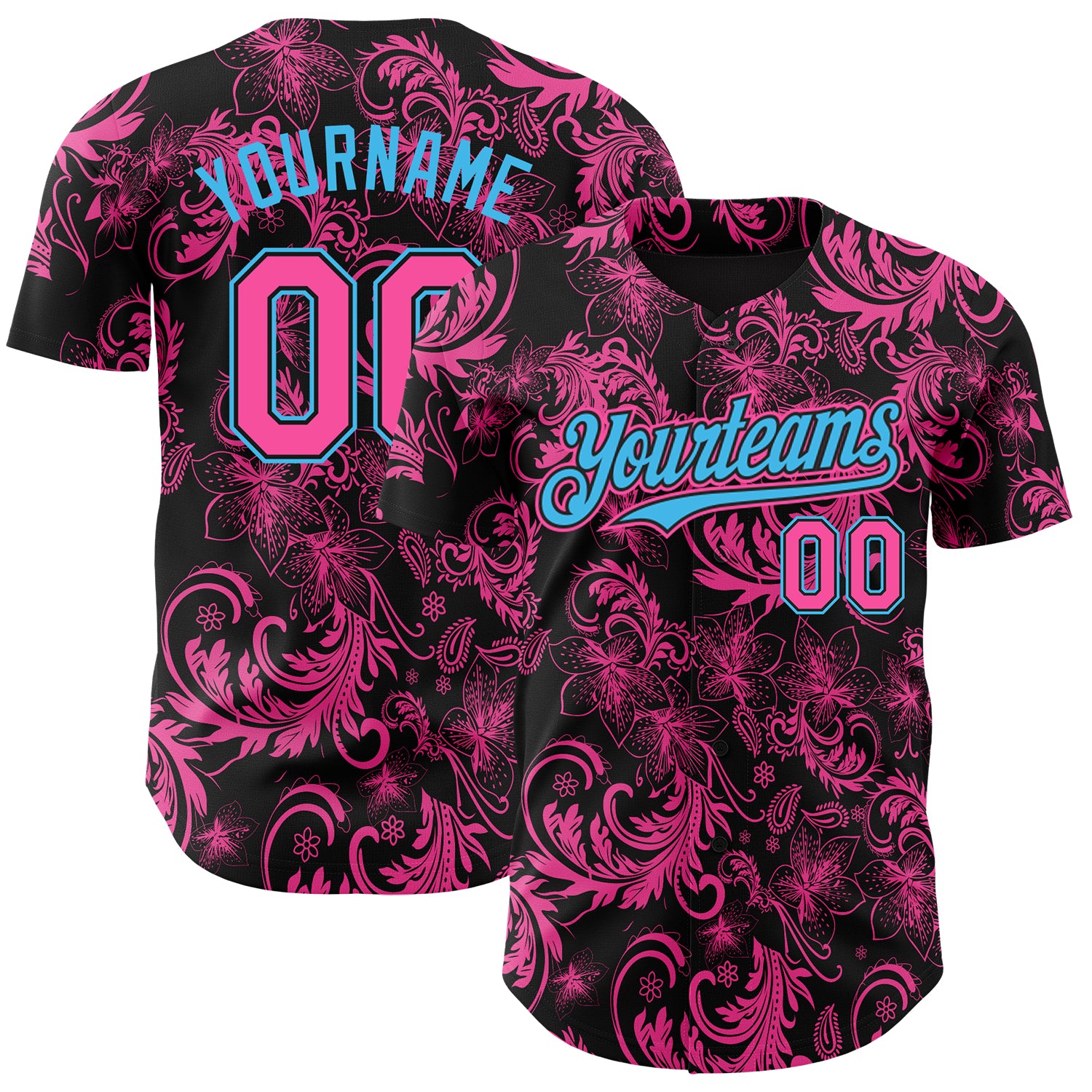 Custom Black Pink-Sky Blue 3D Pattern Design Flower Authentic Baseball Jersey