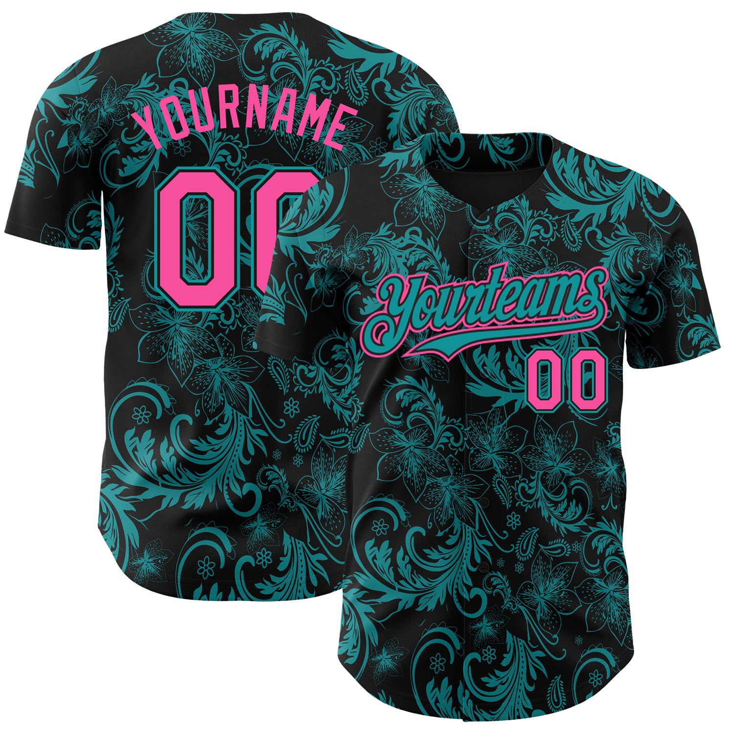 Custom Black Pink-Teal 3D Pattern Design Flower Authentic Baseball Jersey