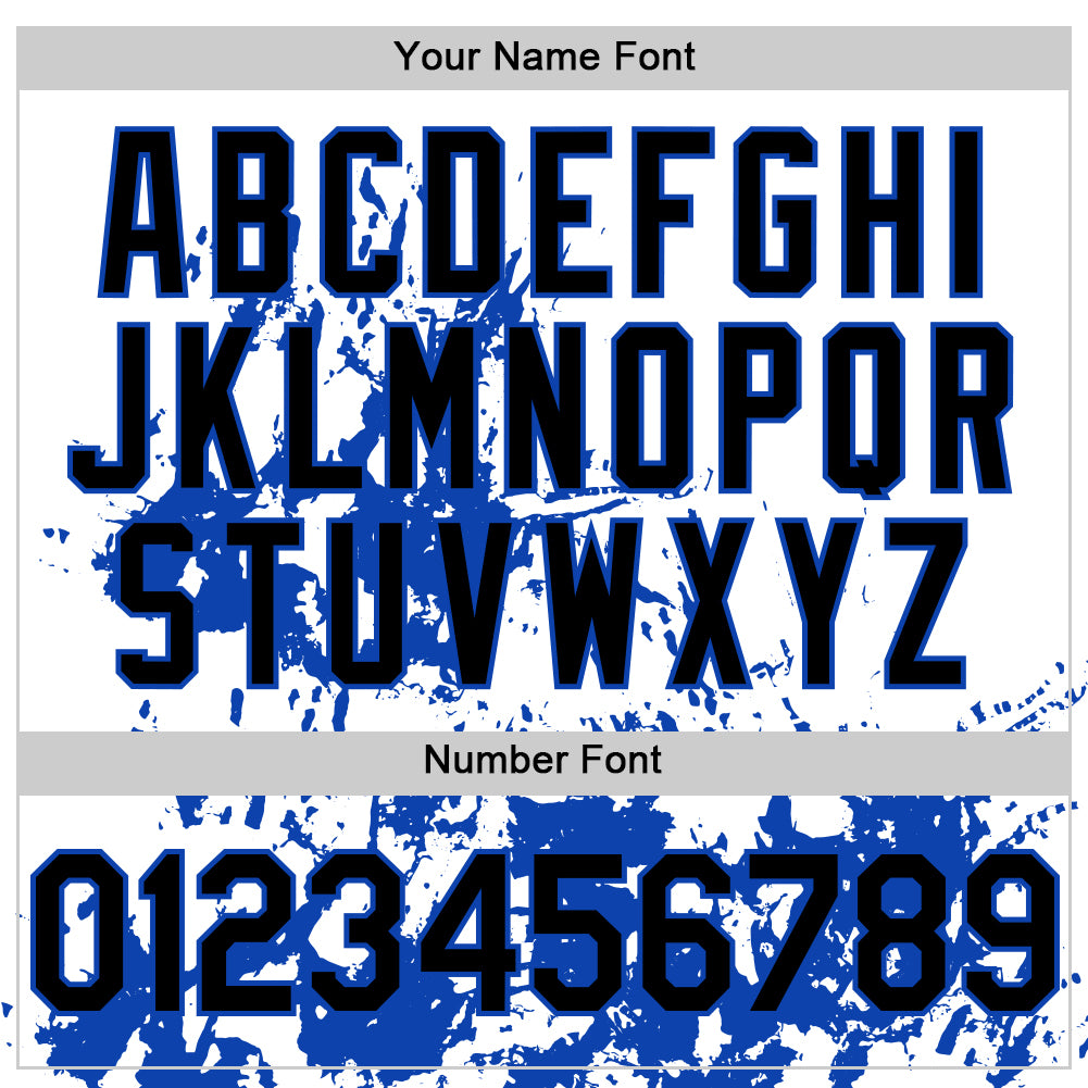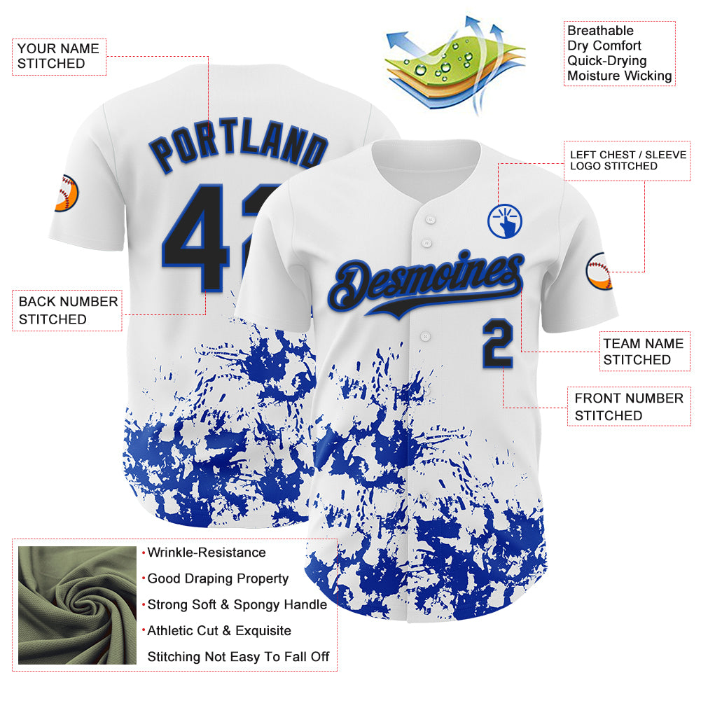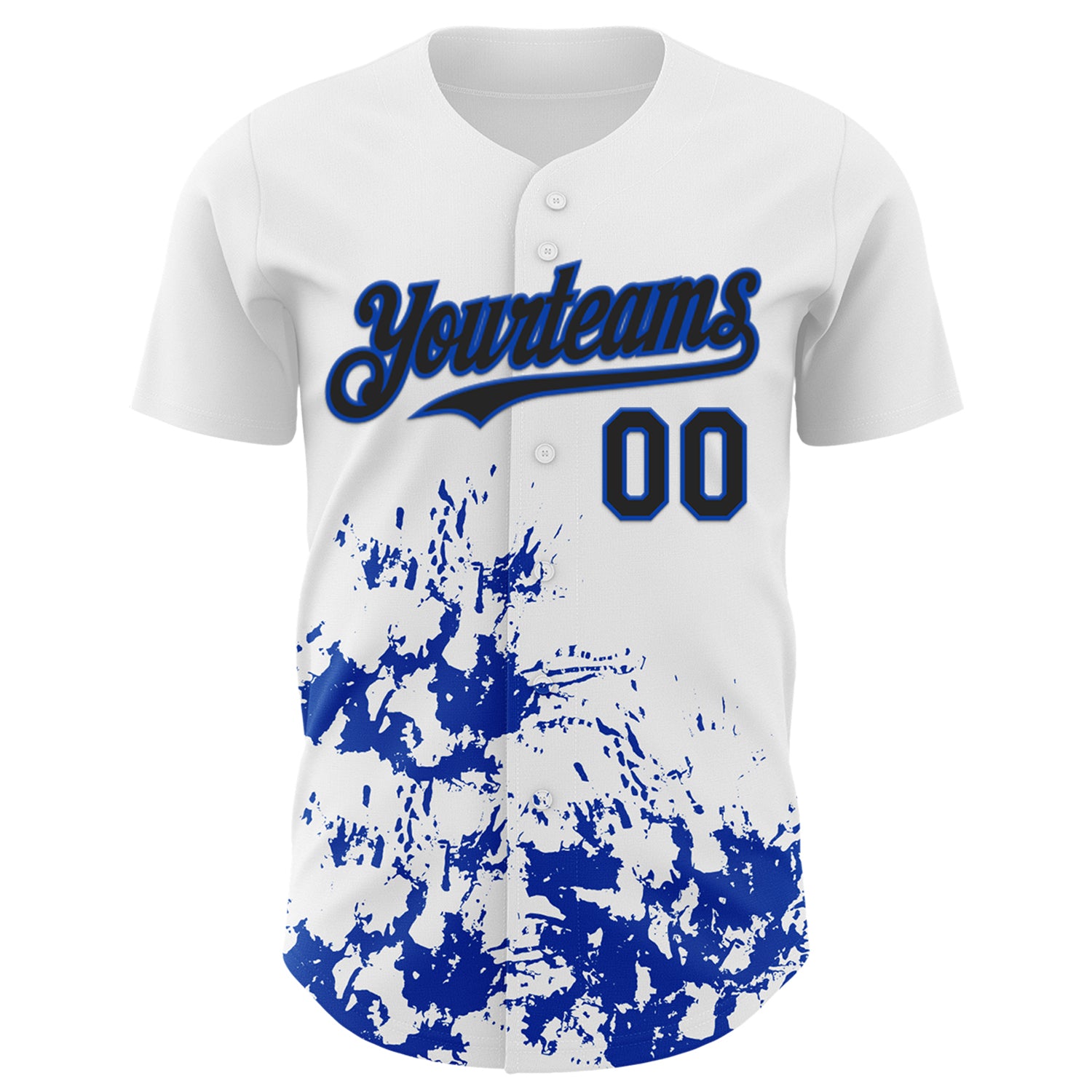 Custom White Black-Thunder Blue Splatter Authentic Baseball Jersey