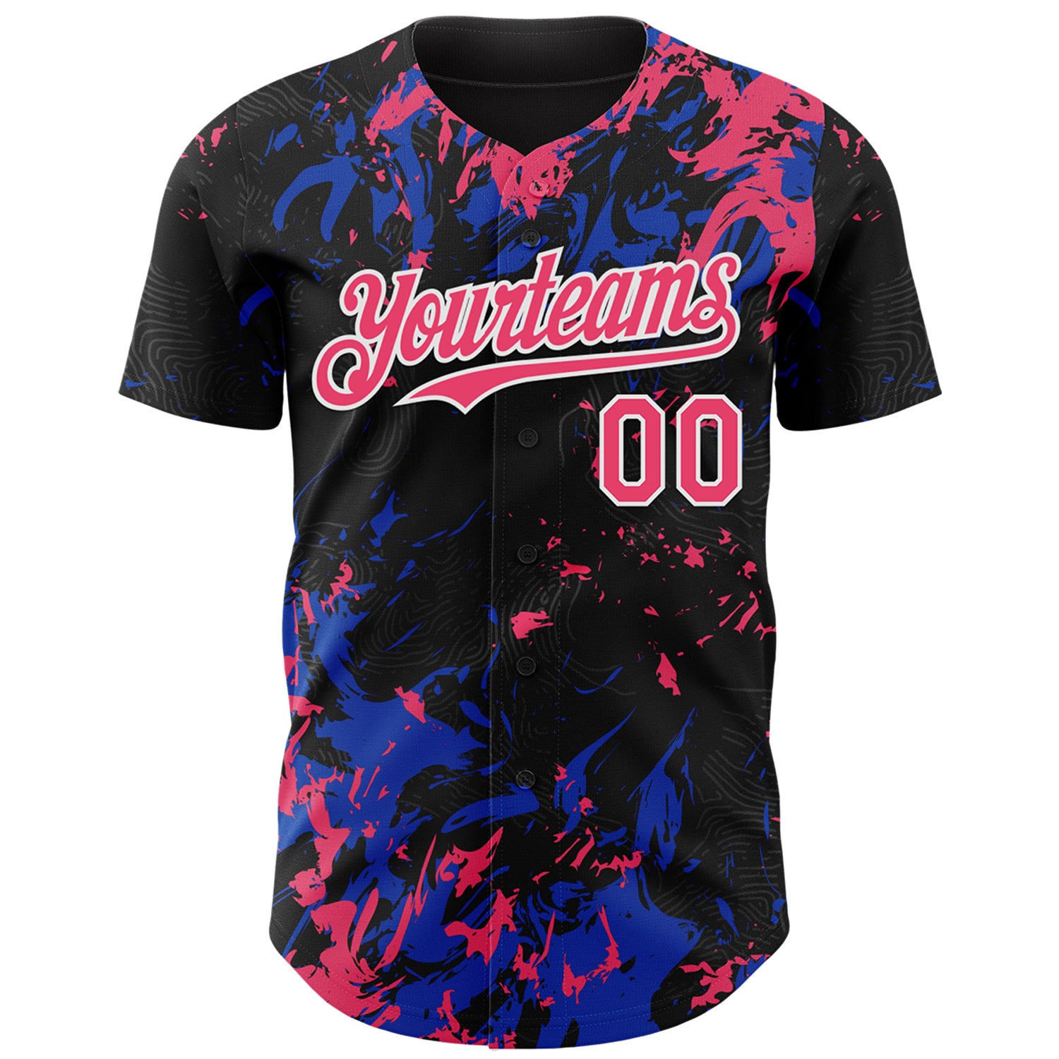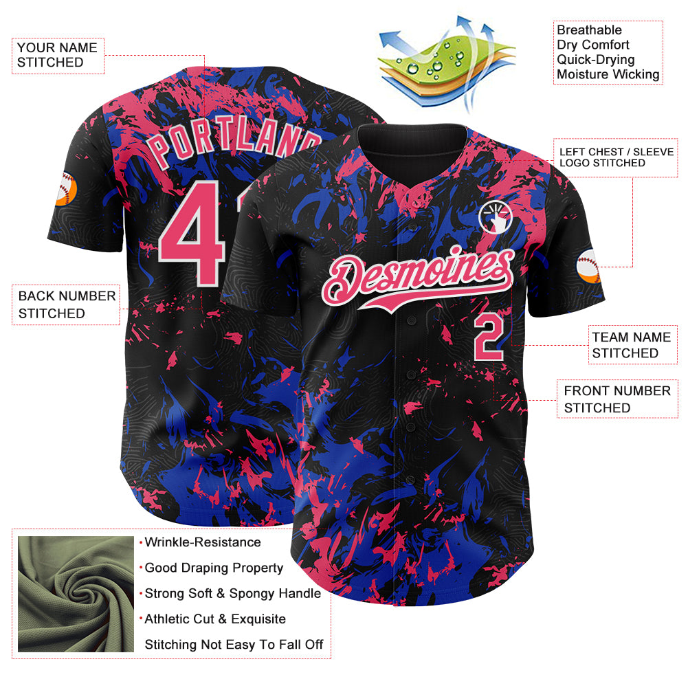 Custom Black Neon Pink Thunder Blue-White 3D Pattern Design Splash Authentic Baseball Jersey