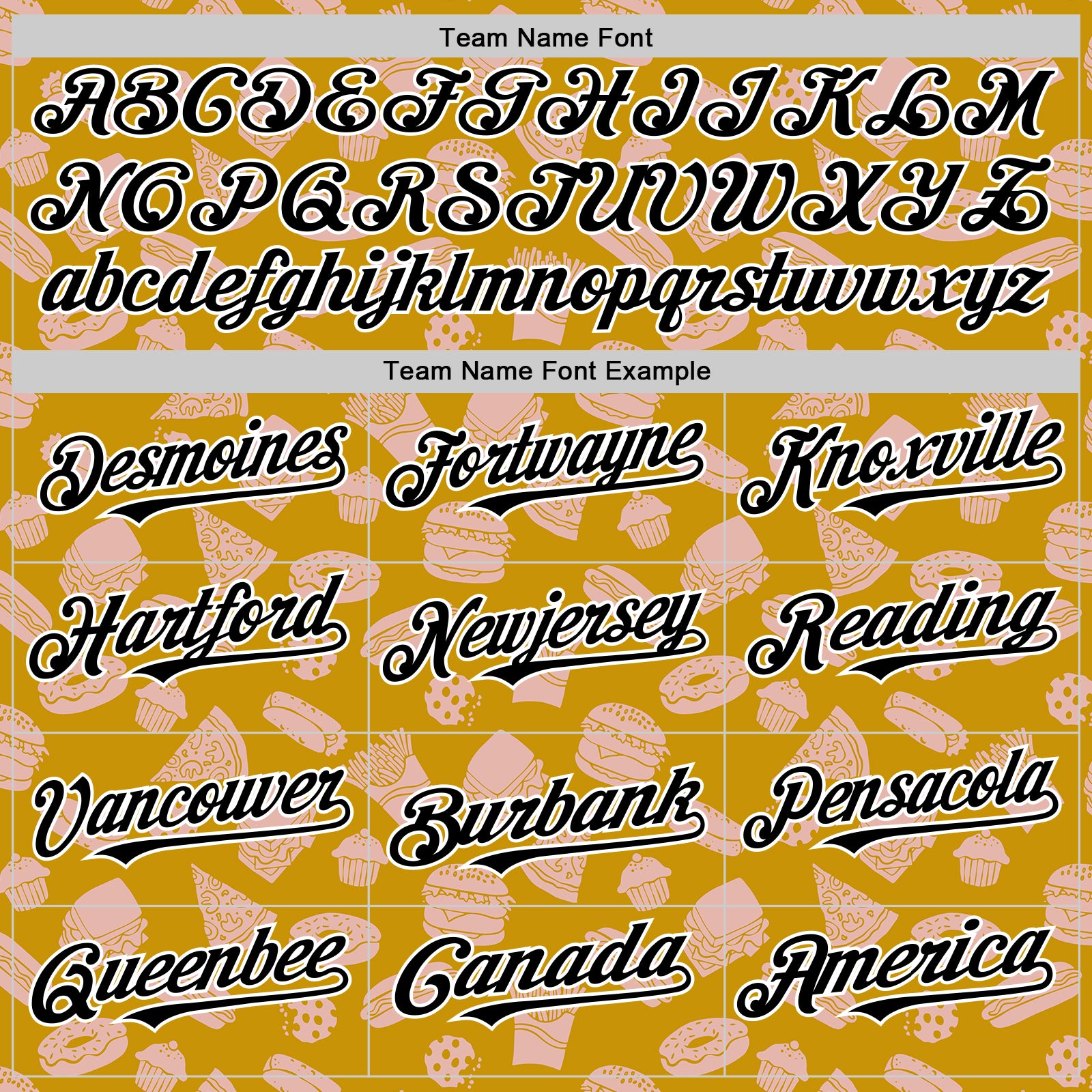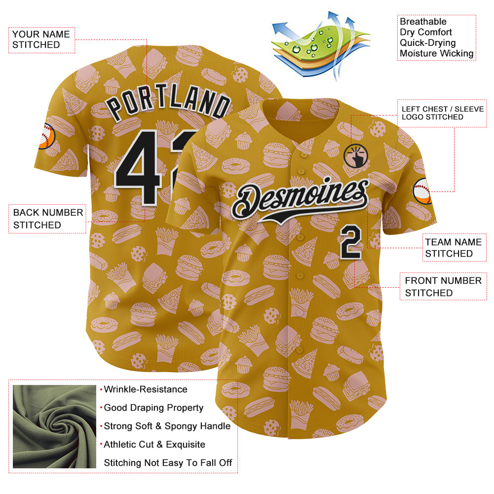 Custom Yellow Black-White 3D Pattern Design Foodie Fast Food Doodles Authentic Baseball Jersey