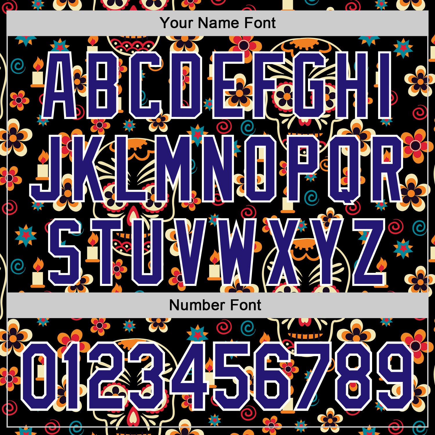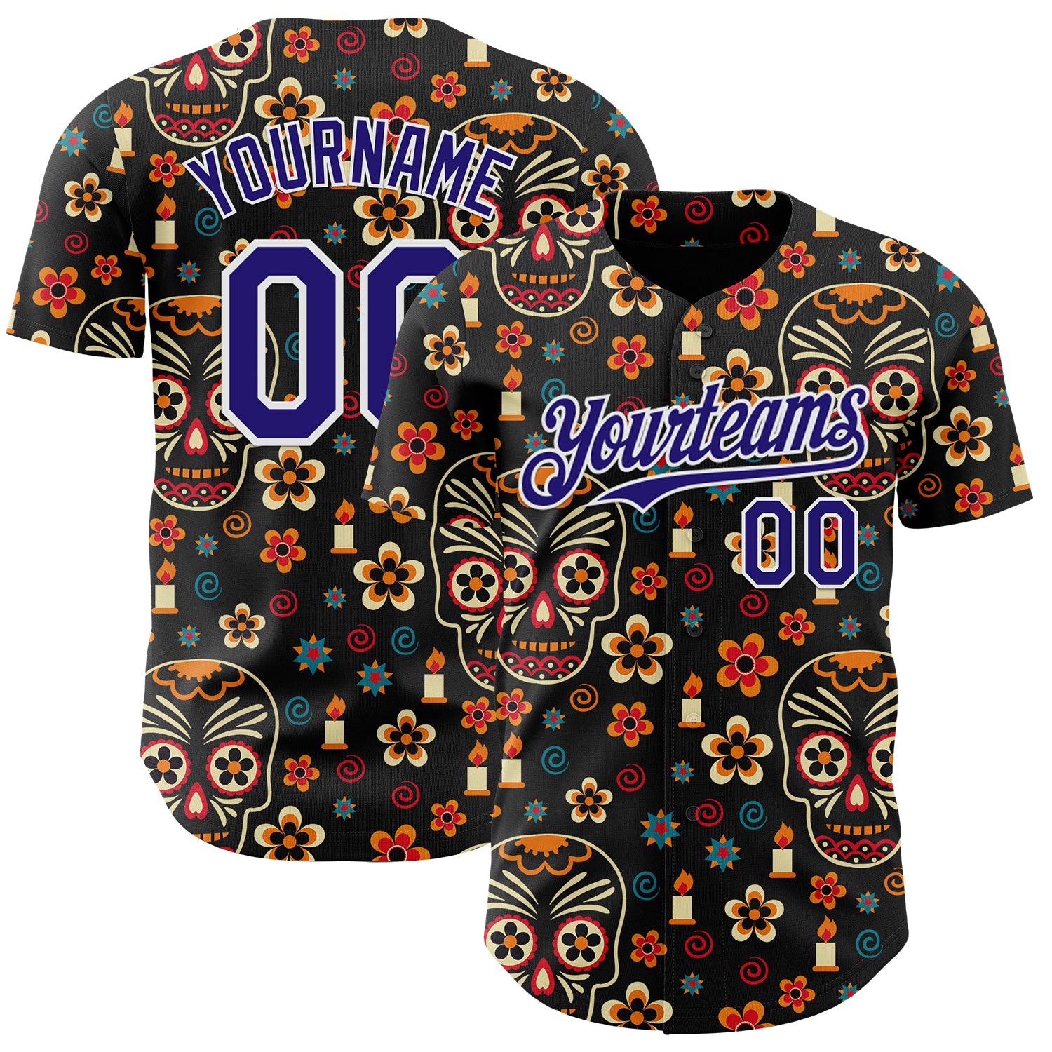 Custom Black Dark Purple-White Sugar Skull Day of the Dead Mexican Folk Art Authentic Baseball Jersey