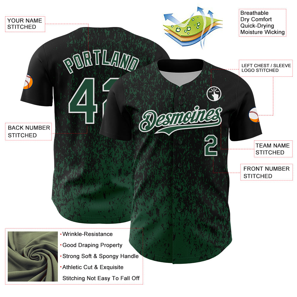 Custom Black Green-White 3D Pattern Design Abstract Fragment Splatter Authentic Baseball Jersey